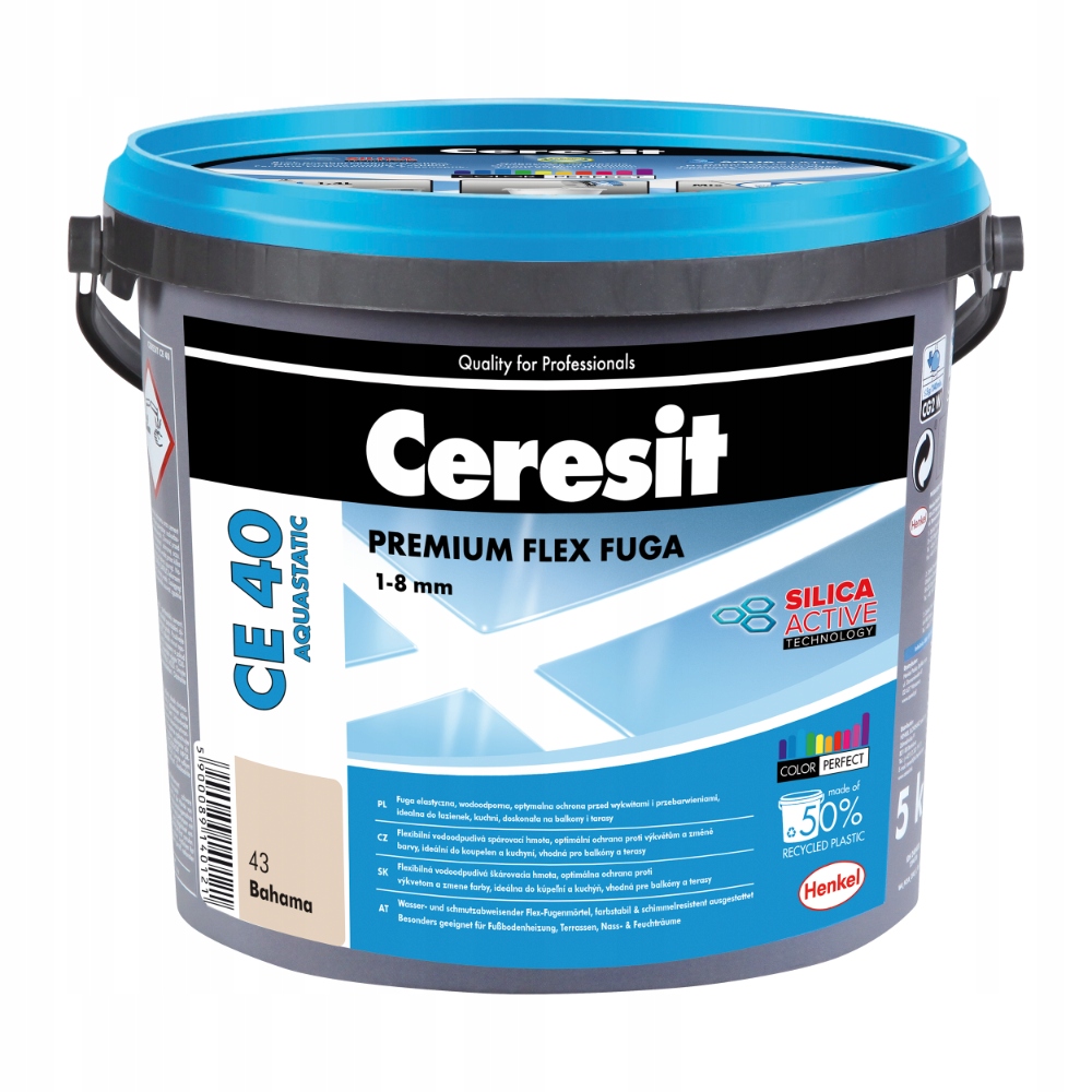 CE 40 имеет оптимальное время связывания и промывки в керамической и керамической плитки. Специальные связи и отличная адгезия к плиткам обеспечивают высокую устойчивость к трещинах и истиранию. CE 40 с активной технологией кремнезема является длительным и интенсивным цветом без выцветания в течение многих лет. Меттер CERESIT CE 40 используется для соединительных кероктивных плиток, других видов керамики, стеклянных и каменных плиток (также мраморных), как на вертикальных, так и на горизонтальных поверхностях.