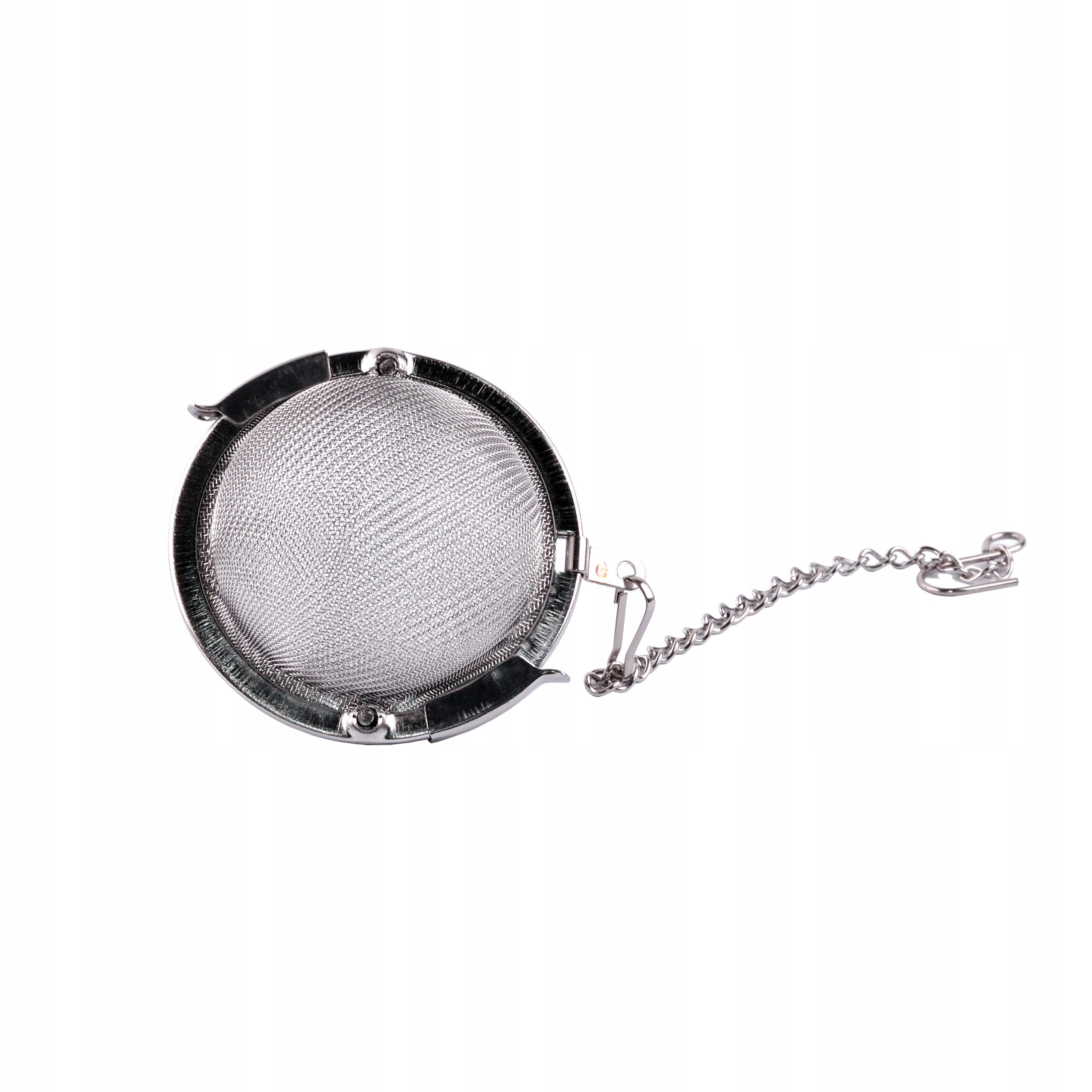 Заварник для чая в форме шара диаметром 40 мм. Он изготовлен из нержавеющей стали. Предотвращает попадание гущи в чашку.