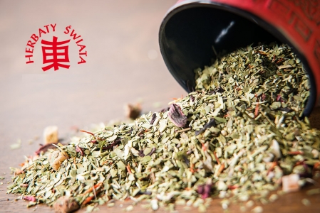 Падуб парагвайский с гибискусом, манго, папайей, клубникой, ананасом, шафраном и смородиной.