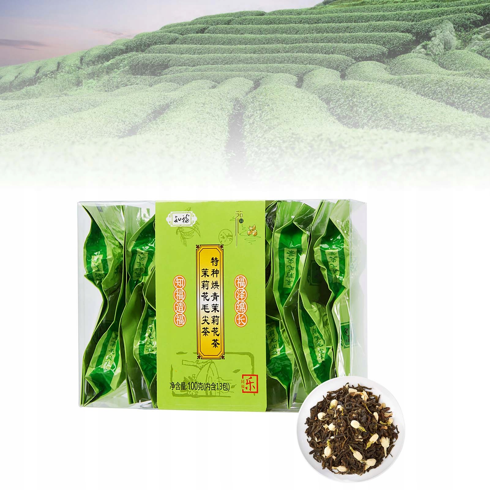 3. Хранение при нормальной температуре: Свободные листья зеленого чая имеют срок годности 24 месяца, следует хранить при комнатной температуре, чистое содержание 100 г, подходящее для утреннего чая, послеобеденный чай, питье на вечеринке 4. Чистое и зеленое: цветы китайского чая жасмин могут растягиваться в горячей воде, а чай выглядит ярким и зеленым.