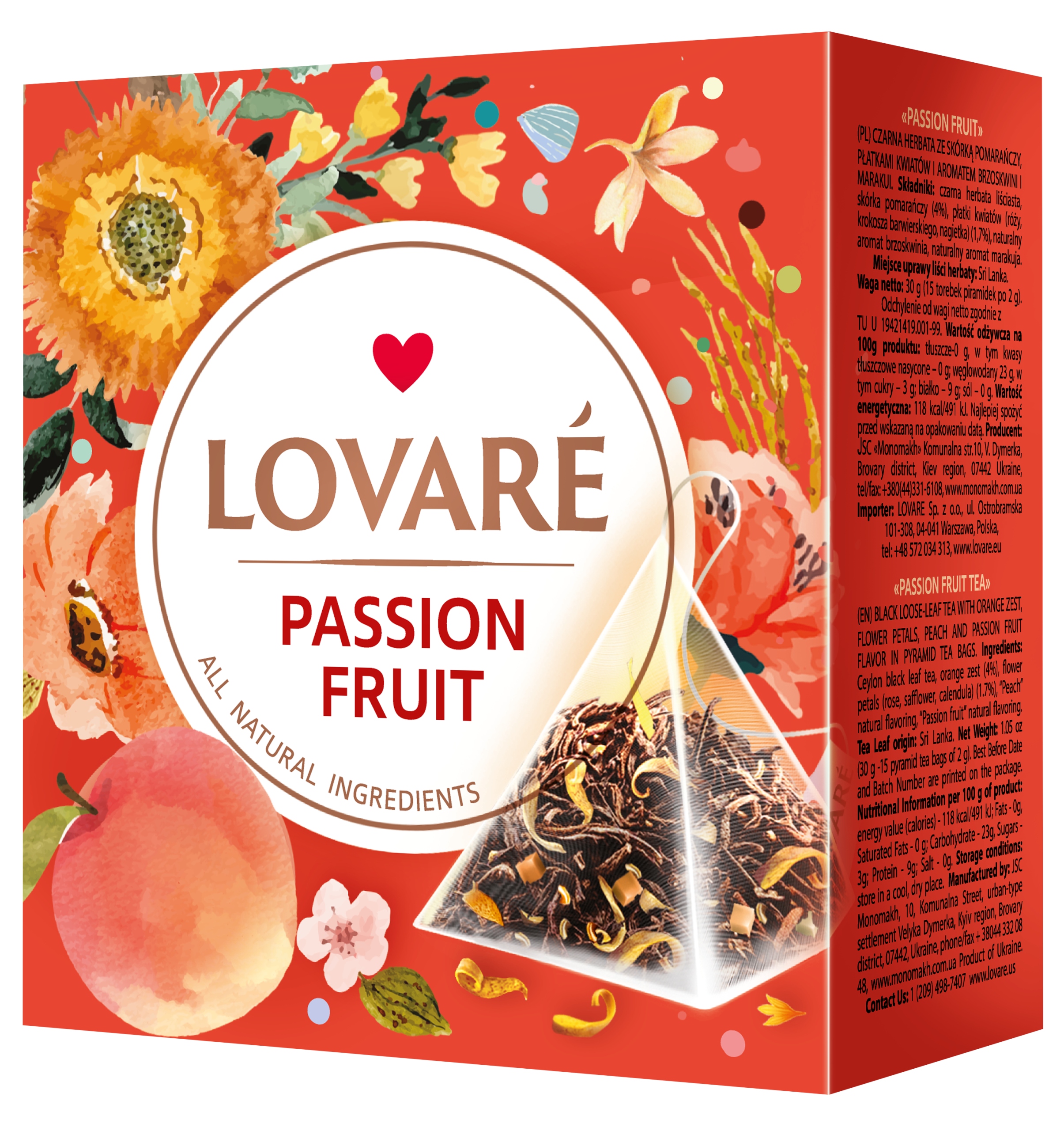Чай Ловаре, смесь чаев с добавками маракуйи, 15 пирамидок х2гр