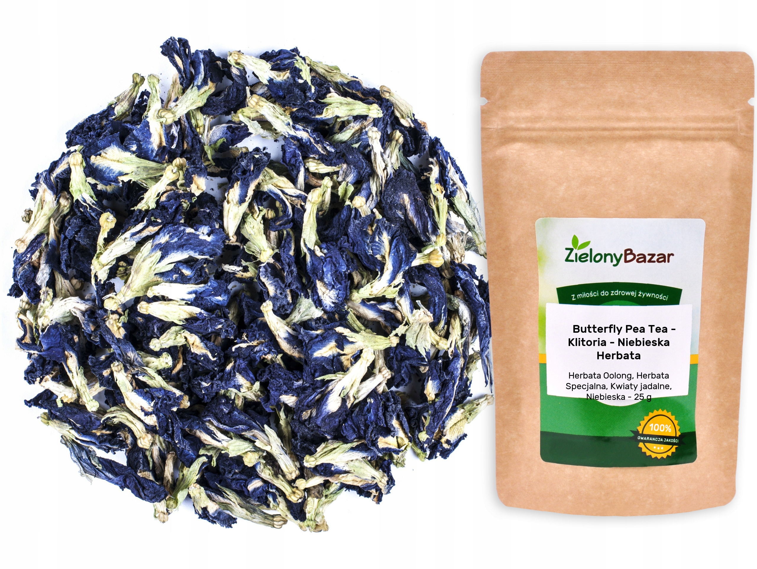 Синий чай (Butterfly pea Tea) – это высушенные цветки Clitoria ternatena. Клитория - растение из семейства бобовых с массивными голубыми листьями с характерным желтым пятном посередине.Настой цветков клитории имеет интенсивно синий цвет, но из-за сильной чувствительности к изменению pH воды меняет свой цвет. - например, после добавления лимонного сока настой становится насыщенно-фиолетового цвета. Butterfly Pea Tea имеет типичный травяной, слегка землистый вкус. Настой используется в аюрведической медицине.