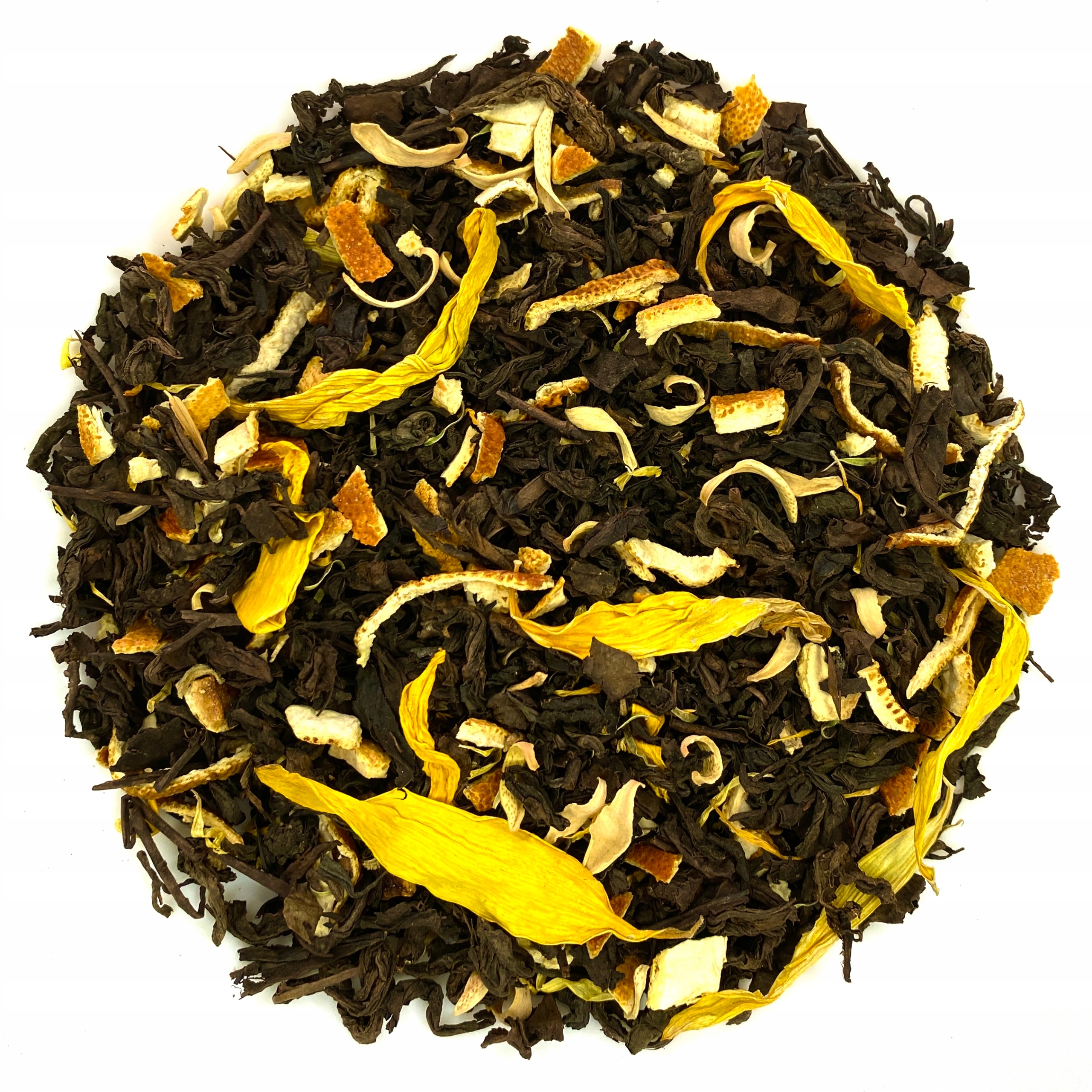 ПУЭР Чай Апельсин — смесь чая пуэр с добавлением апельсина. В сочетании с ароматом сочного апельсина этот чай приобретает новый, более насыщенный вкус и запах