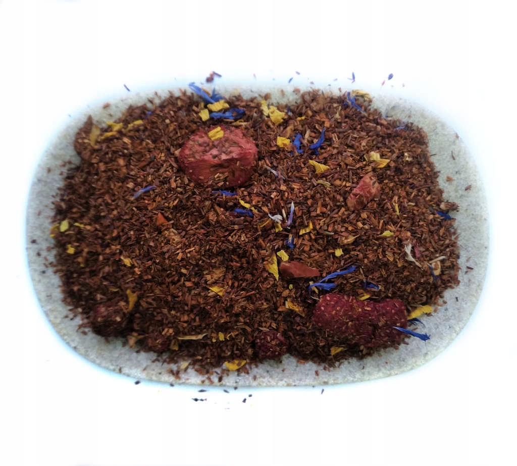 Чай Fairy Rooibos — это сказочно выглядящий продукт, полученный путем соединения листьев (хвоинок) африканского красного куста (Aspalathus Linearis) с кусочками лиофилизированной клубники. , смородина сублимированная, кусочки яблока, лепестки подсолнуха и василька. Этот чай великолепно выглядит и имеет прекрасный вкус!