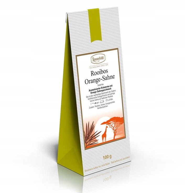 Фруктовый чай RonnefeldtRooibos Orange-Sahne отличается изысканной композицией нежных листьев южноафриканского куста ройбуш в сочетании с ароматом апельсина.