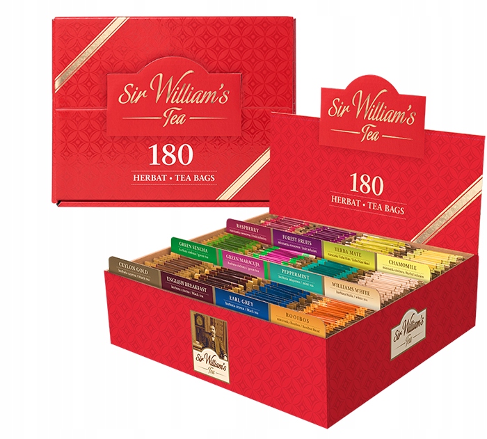 Оригинальный набор чая Sir William's из 180 штук в картонной коробке, прекрасный подарок