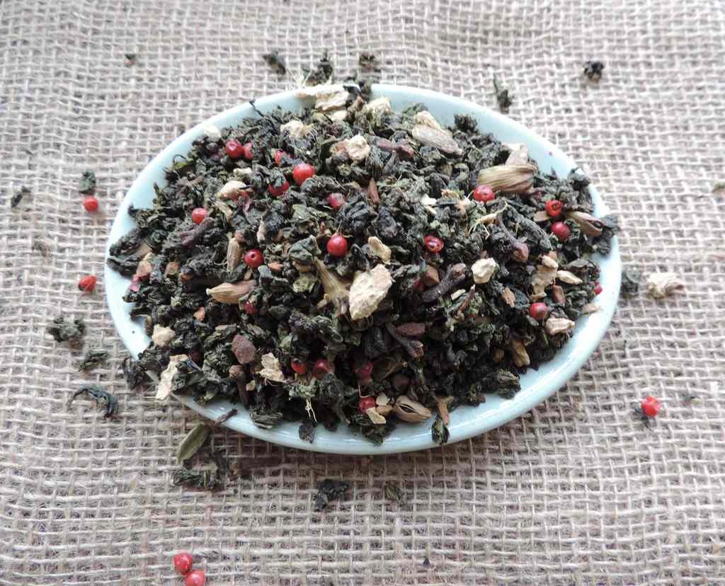 Чай Улун — это вкусная смесь высококачественного чая улун с группой специй, таких как имбирь, корица, гвоздика, кардамон, красный перец. Этот чай обладает явным согревающим эффектом.