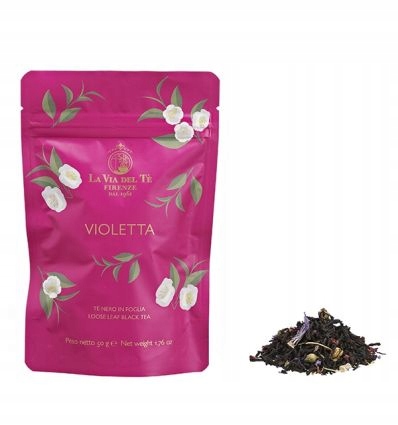 Чай La Via Del Te Violetta — смесь черных чаев из Индии и Китая с добавлением малины, цветов дикой мальвы, цветков бузины и натуральных ароматов. Вкус полный, фруктовый, с нотами в аромате малина., вишня, черника и миндаль.