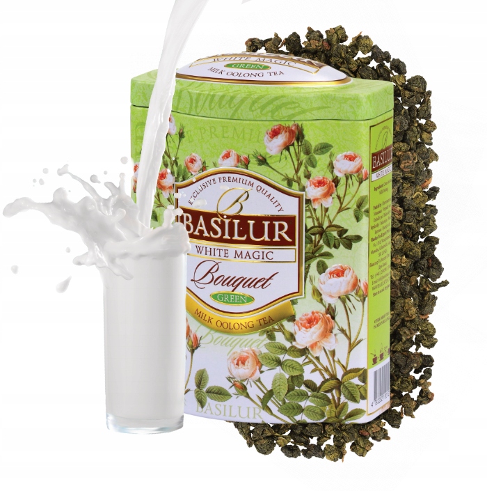 Состав:Цейлонский улун зеленый крупнолистовой чай (50%), смесь зеленых чаев из другого региона (46,5%) с добавлением молочного вкуса (3,5%).