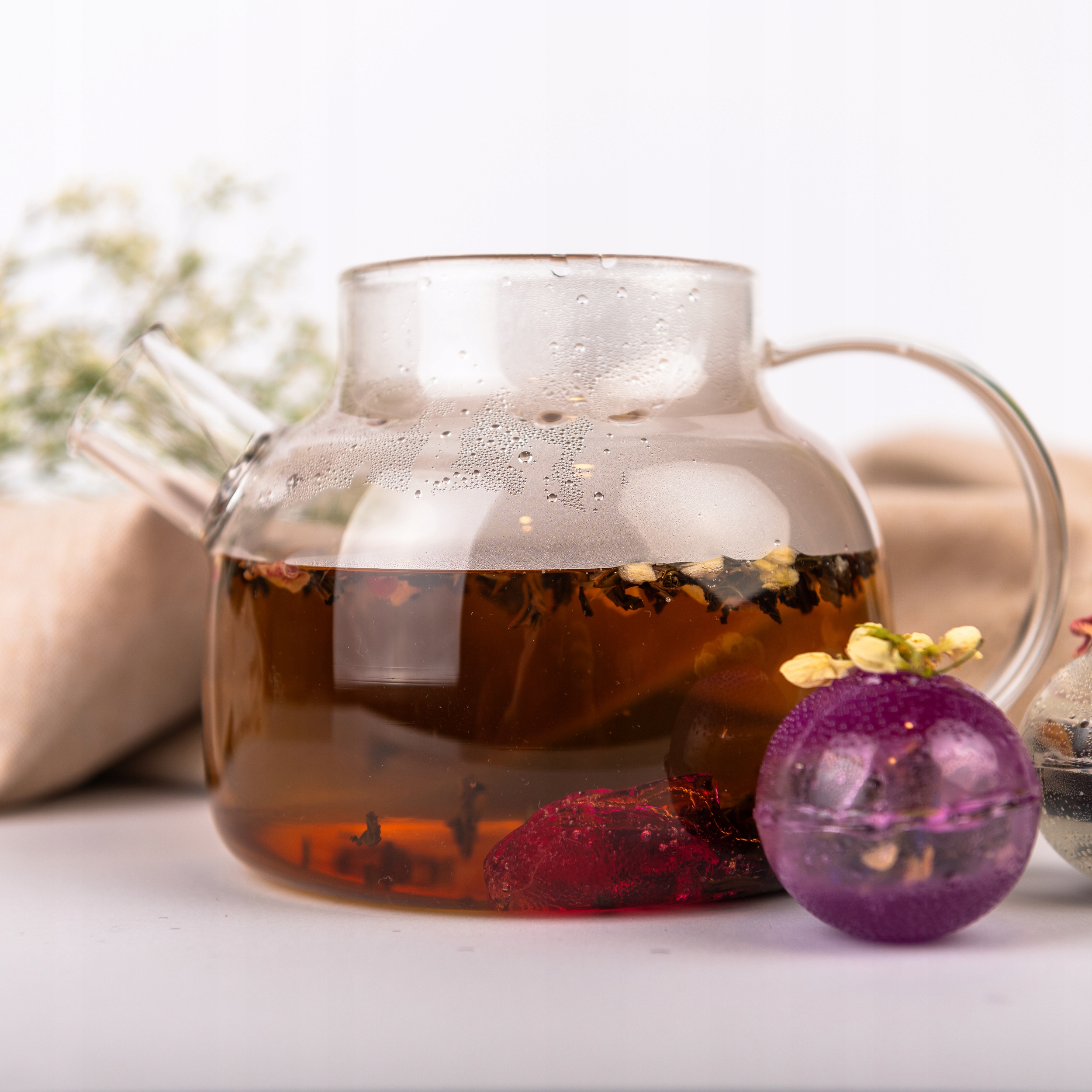 Прозрачный синий шарик, в котором заключена чайная смесь, изготовлен из изомальта – низкокалорийного подсластителя. Изомальту свойственна нежная сладость, которая прекрасно дополняет вкус чая, не добавляя лишних калорий. Это идеальная альтернатива традиционному сахару, благодаря которой каждый настой приобретает дополнительную нотку вкуса.