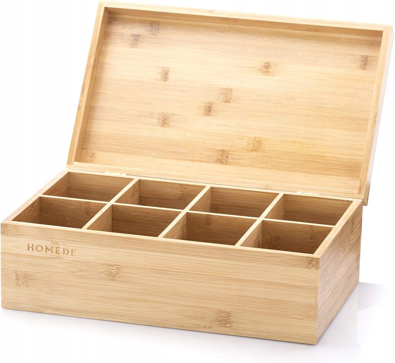 - Практическая чайная коробка с крышкой и 8 отсеками. Только для кухни в качестве чайного ящика, но также как универсальный ящик для хранения, который будет выглядеть идеально в любой комнате