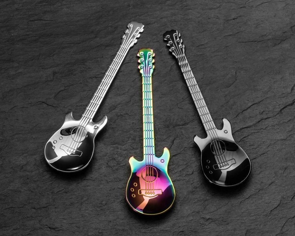 Музыкальные ложки в форме гитары в трех цветах на любой вкус любителей музыки. Это ложки для всех тех, кто хочет, чтобы каждый день проходил гладко и все шло гладко, когда они помешивают или подслащивают утренний кофе или чай нашей музыкальной ложкой ;)