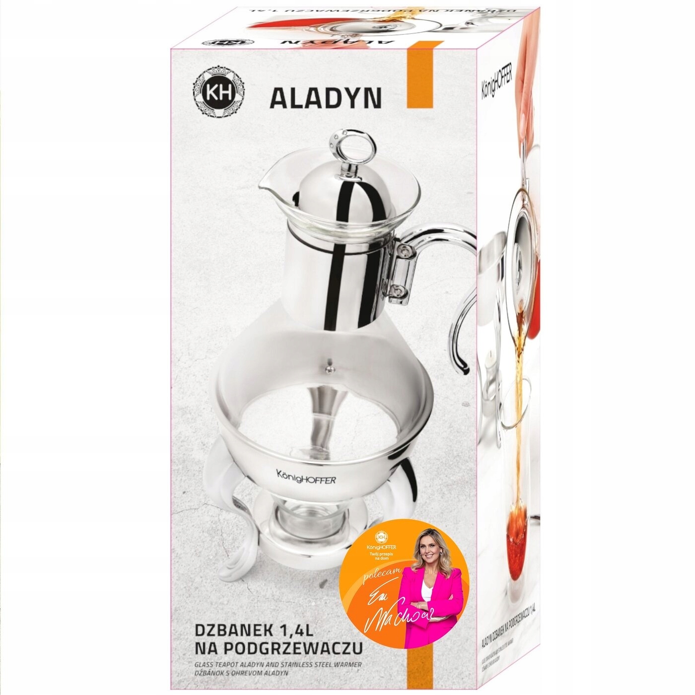 Кувшин на обогревателе Konghoffer Aladdin 1.4 L - это стилизованное блюдо, которое позволяет элегантно и эффективно подавать кофе или чай. Благодаря уникальной форме и украшению (гравировка, стразы) - отличное украшение стола и отличная идея подарка. Декоративная подставка для обогревателя гарантирует длительное обслуживание температуры напитка. Создание высококачественного борозильного стекла и нержавеющей стали означает долговечность и превосходное присутствие в течение многих лет. Продукт имеет рекомендацию Ewa Wachowicz. Как посол Konighoffer, она рекомендует ему использовать домашнее использование с улыбкой. Вы получите свой домашний рецепт с ним. Это один из лучших вариантов в этой категории!
