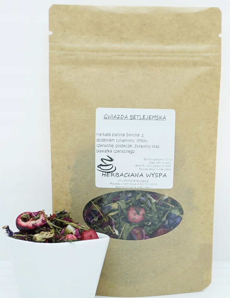 STAR OF ВИФЛЕЕМ 50 г - состав: зеленый чай Сенча, изюм, корица, имбирь, красная смородина, цветы мальвы, клюква, василек розовый..