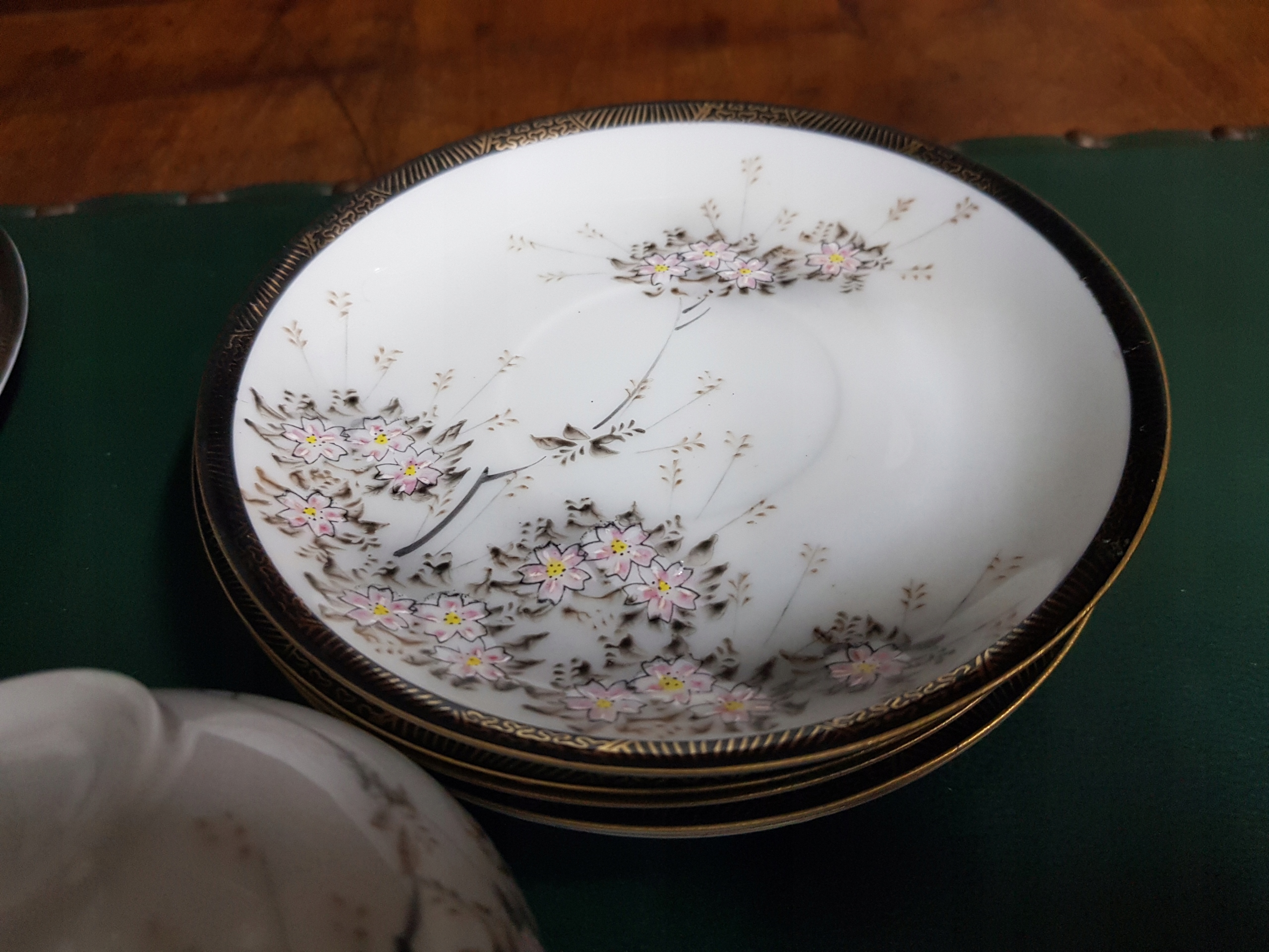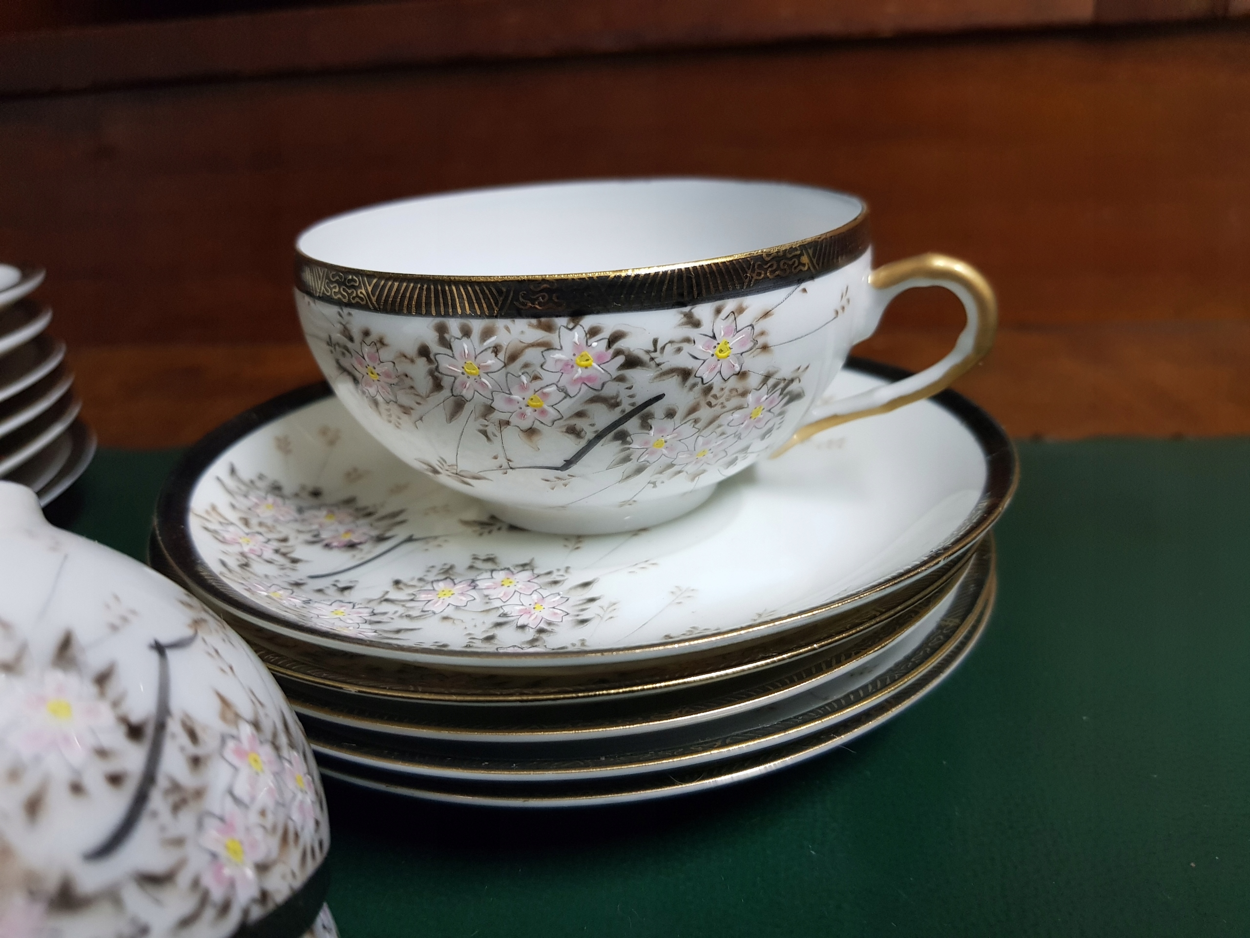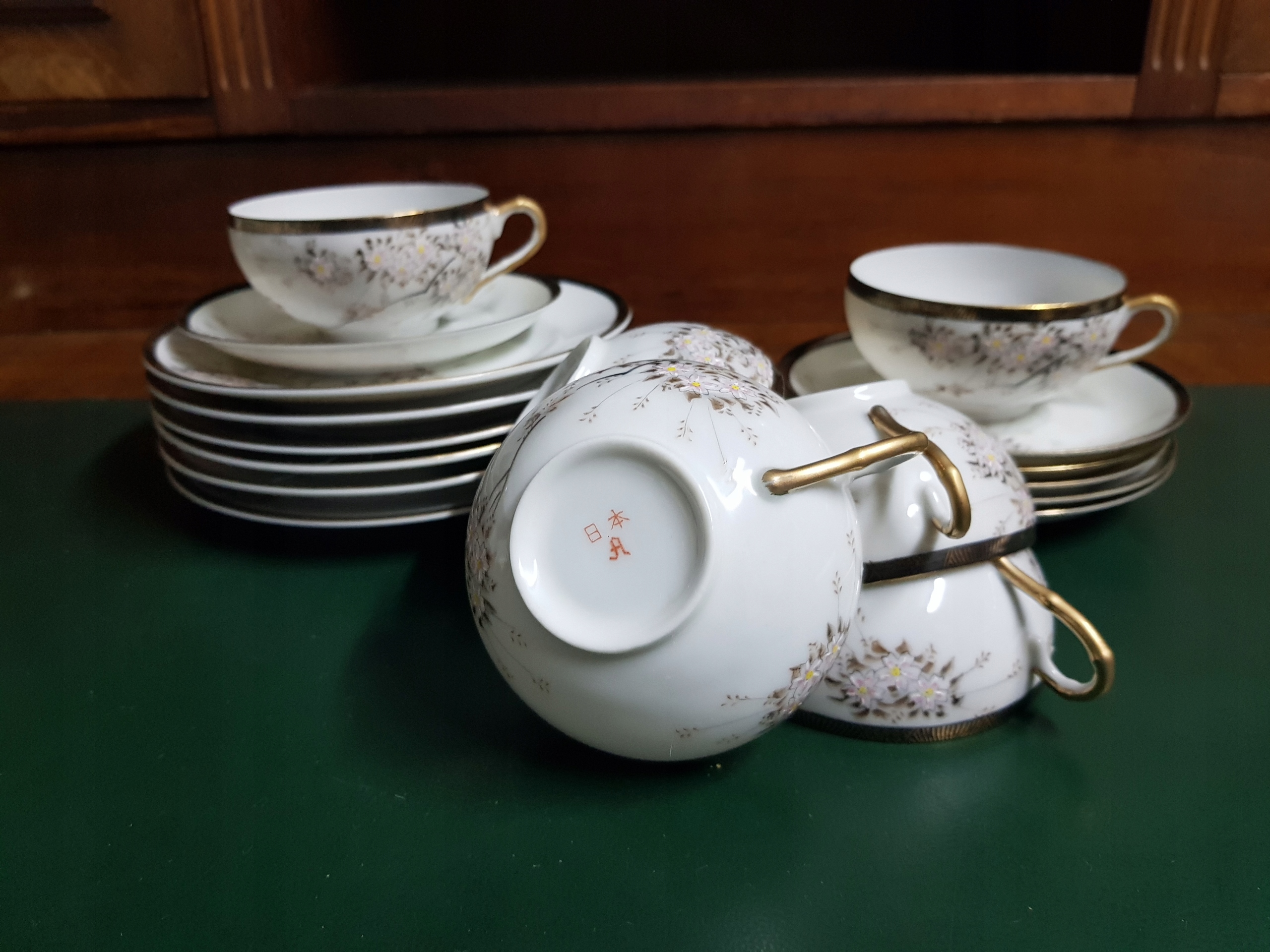 Предмет аукциона - чайный сервиз.Цветущая вишня, ручная роспись.В наличии 6 комплектов.Цена указана за 1 комплект.Наборы отправляются случайным образом.Все одинаково хорошо сохранились.