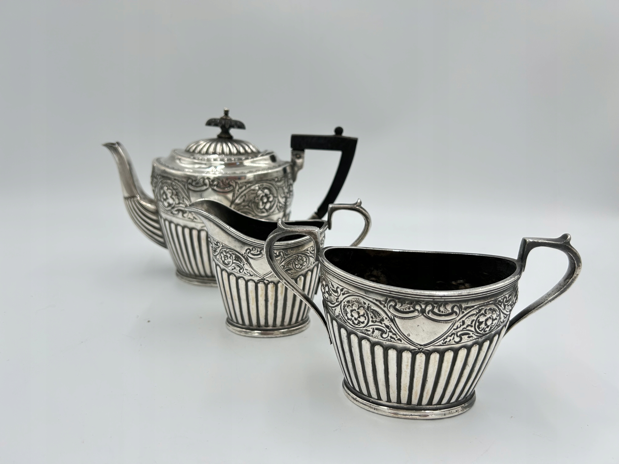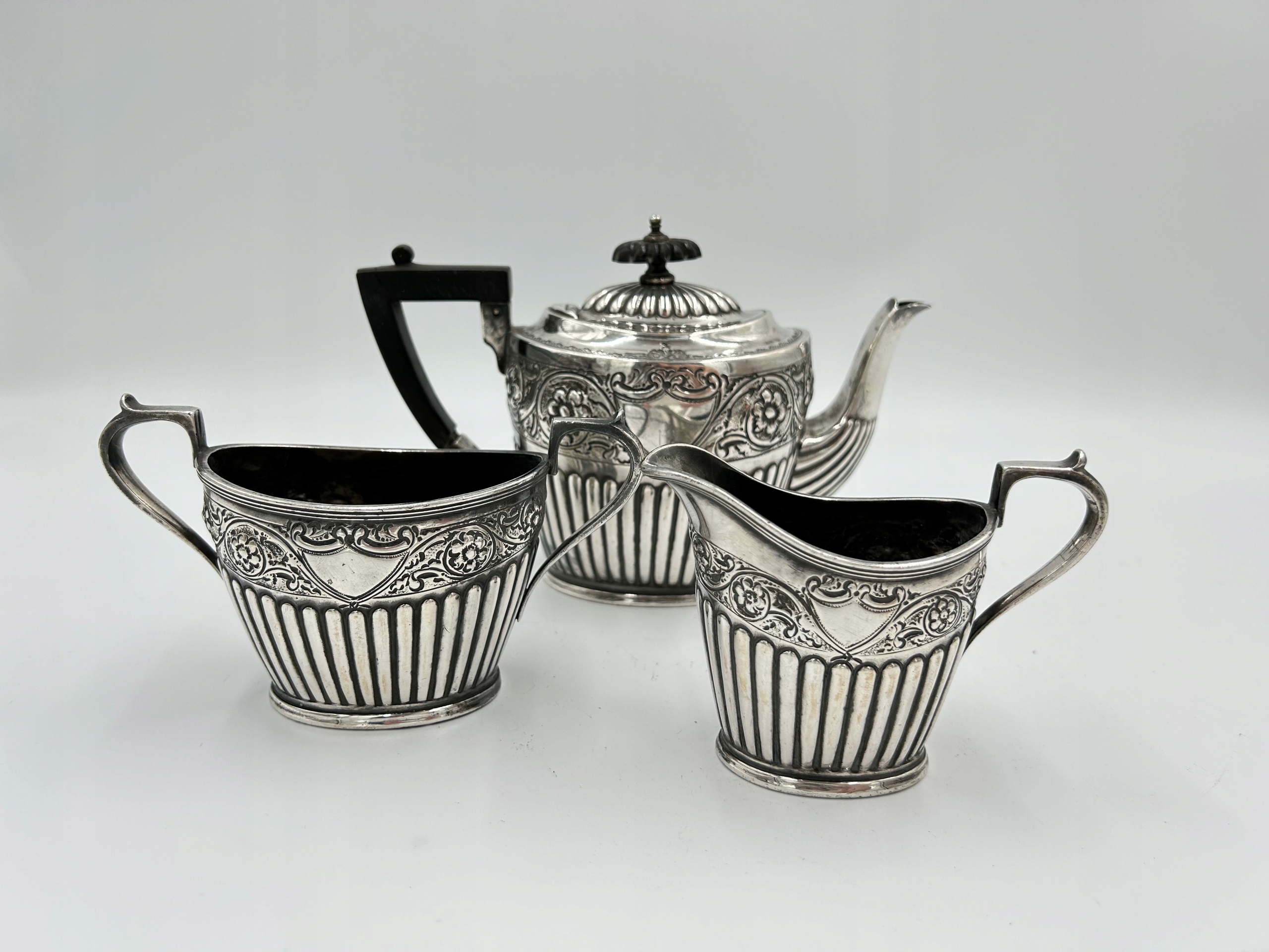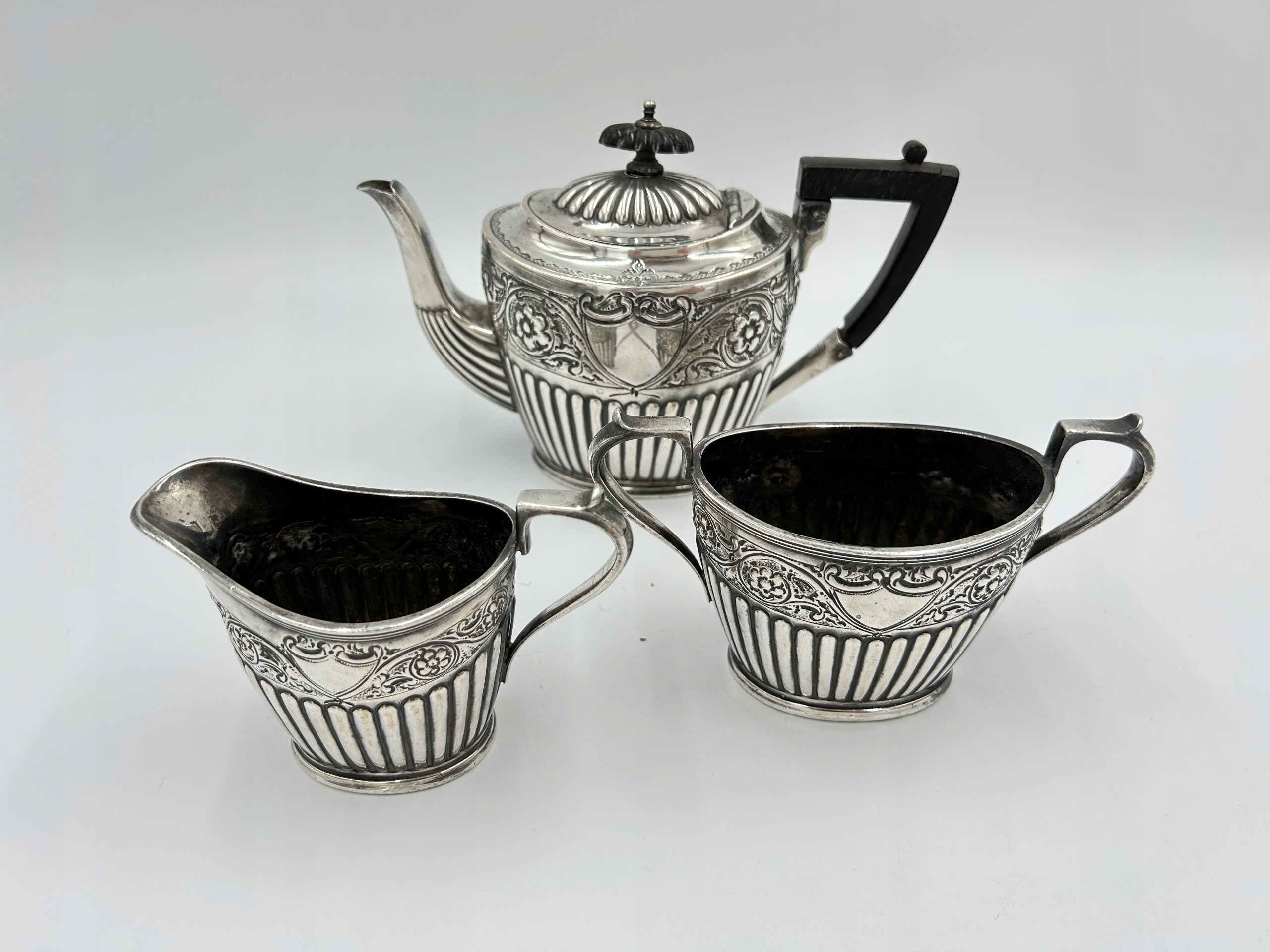 Предмет продажи — красивый сервизовый чайный сервиз от известного английского производителя. Набор, состоящий из чайника, молочника и сахарницы. Элегантный сервиз станет вневременным украшением любого стола. Сделано вручную, с большой точностью и уникальным декором. Подпись находится на дне чайника.