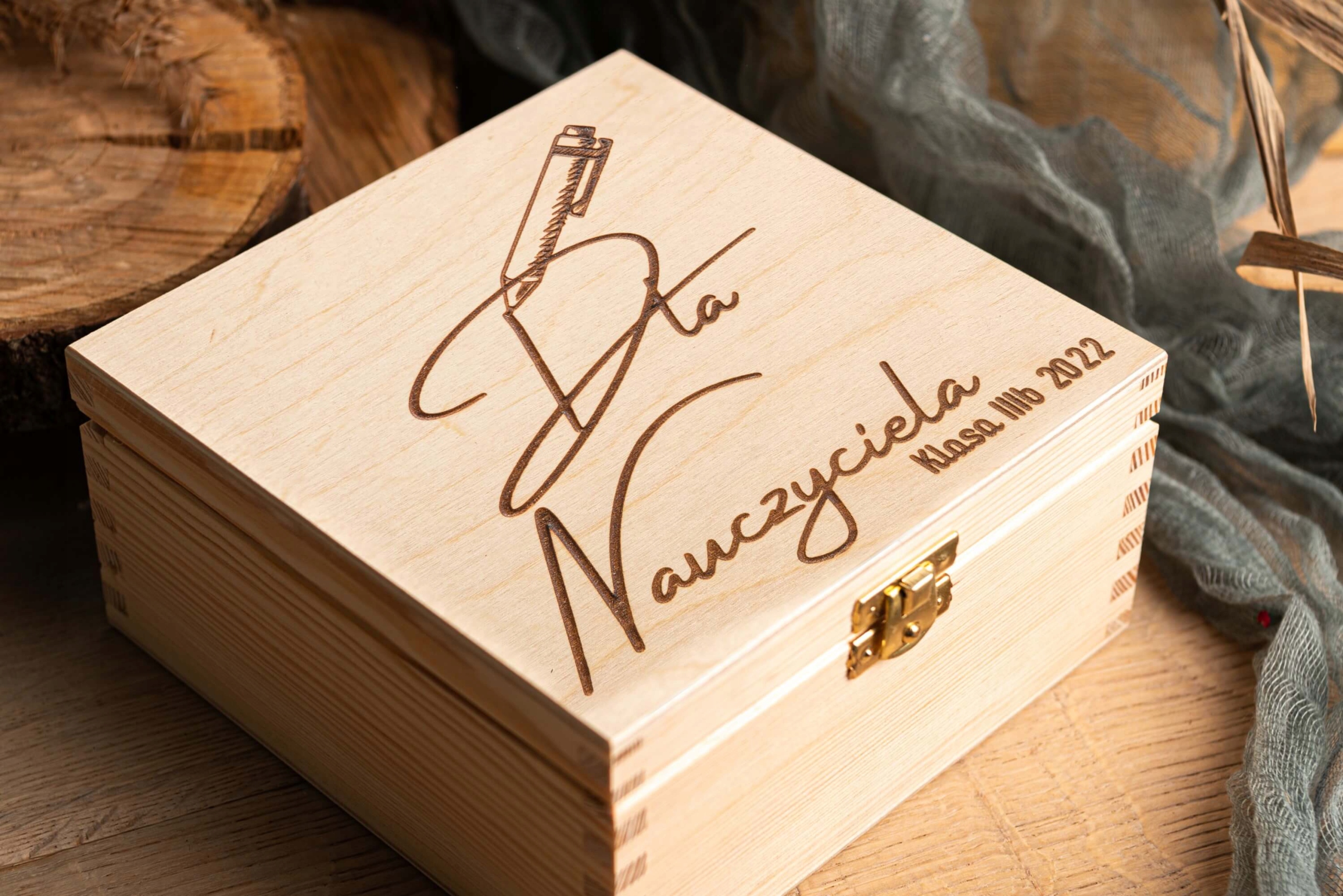 - Ящик сосновый с застежкой с гравировкой. /ul>