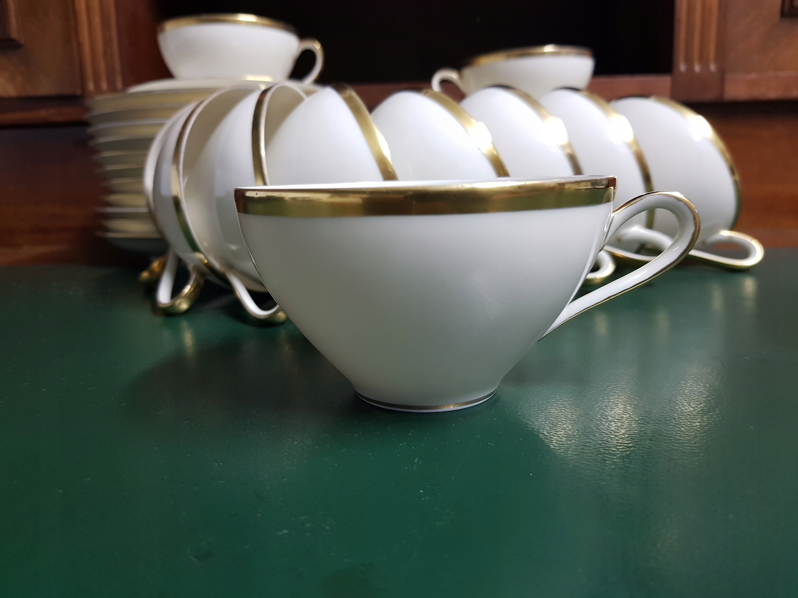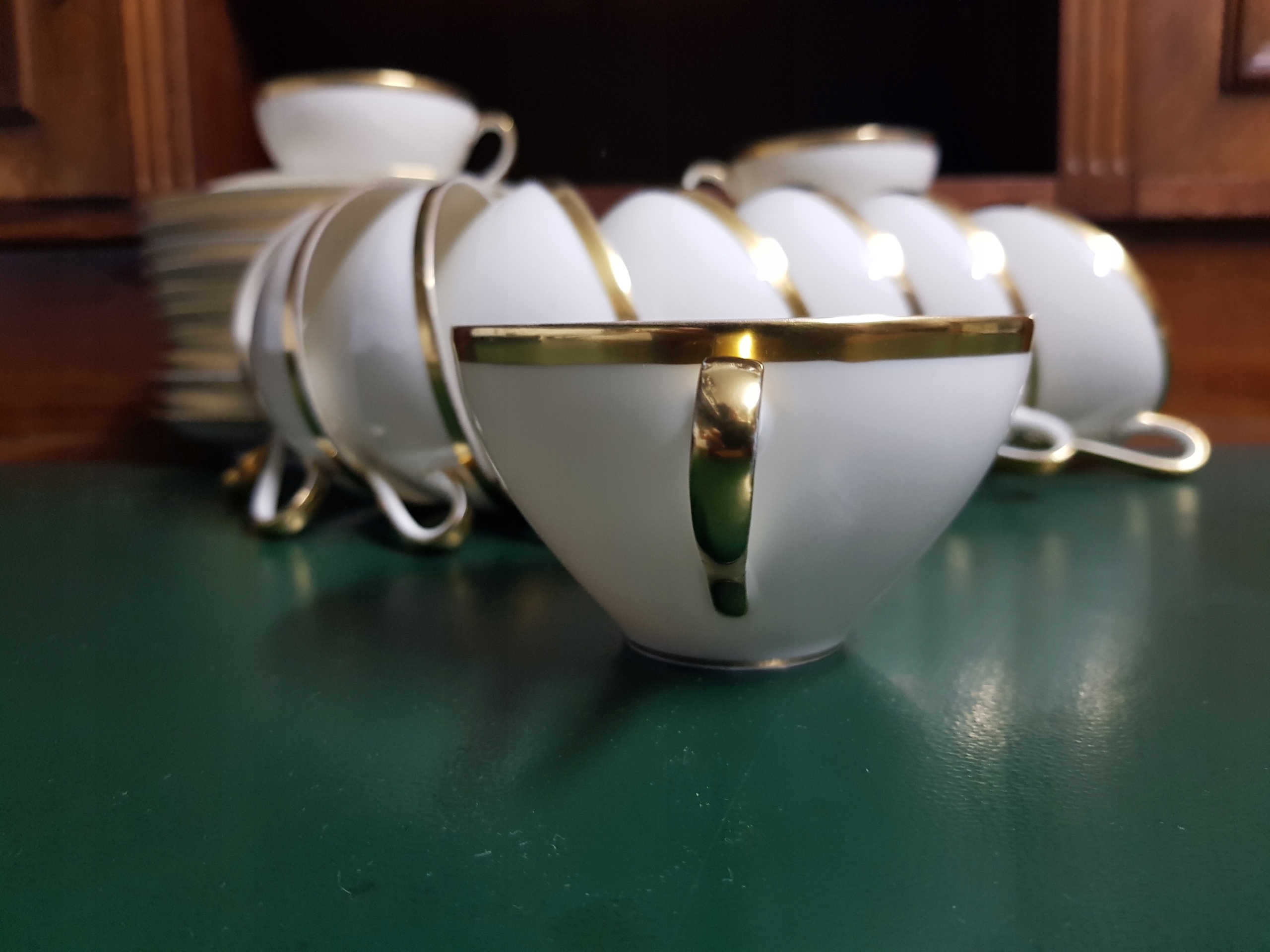 Фарфор кремового цвета. Позолоченные ободки. Позолоченные ручки чашек.