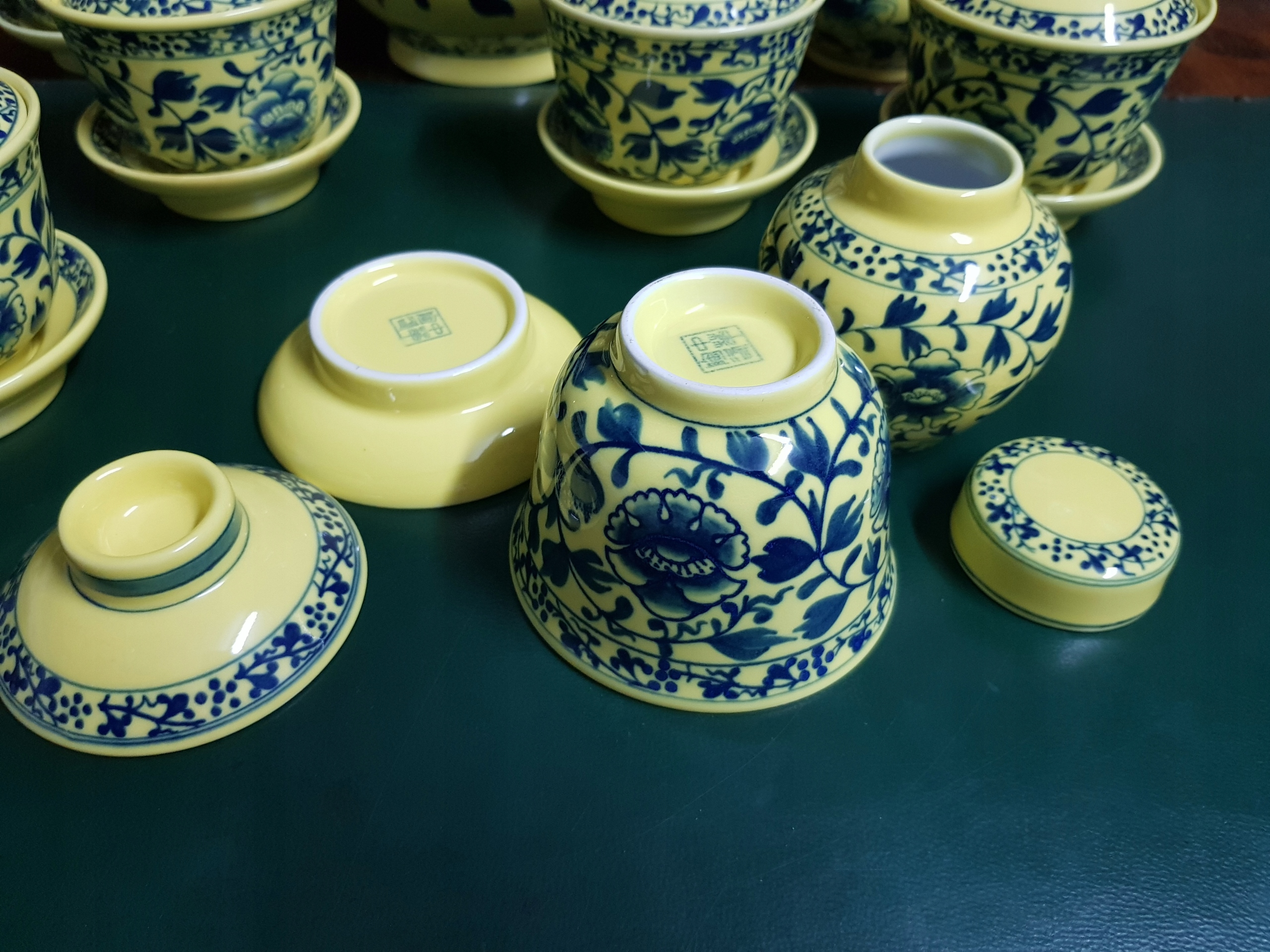 Предмет аукциона - чайный сервиз на 6 персон.Чашки с крышками для заваривания.Большой кувшин и сахарница с крышкой.Ваза.