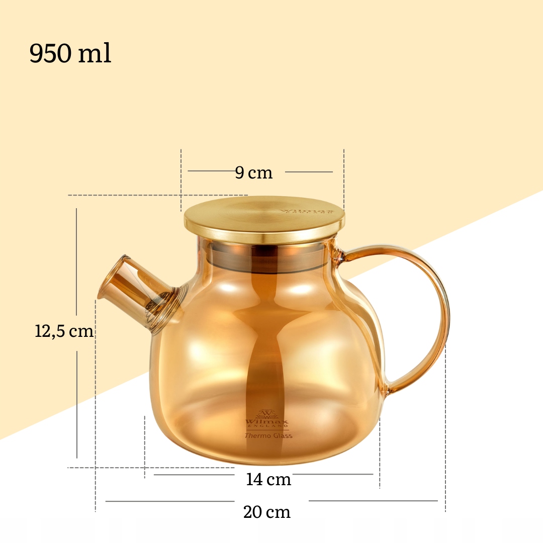 Чайник, 950 мл, Wilmax, термоскло, колір золото