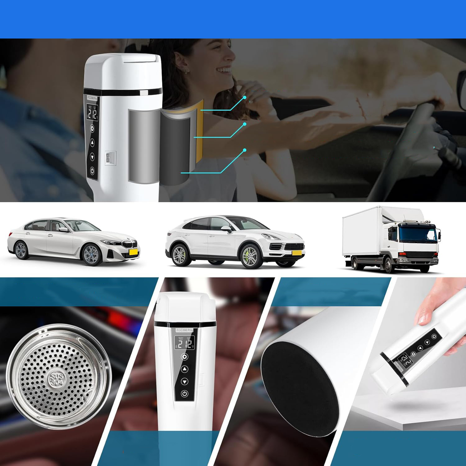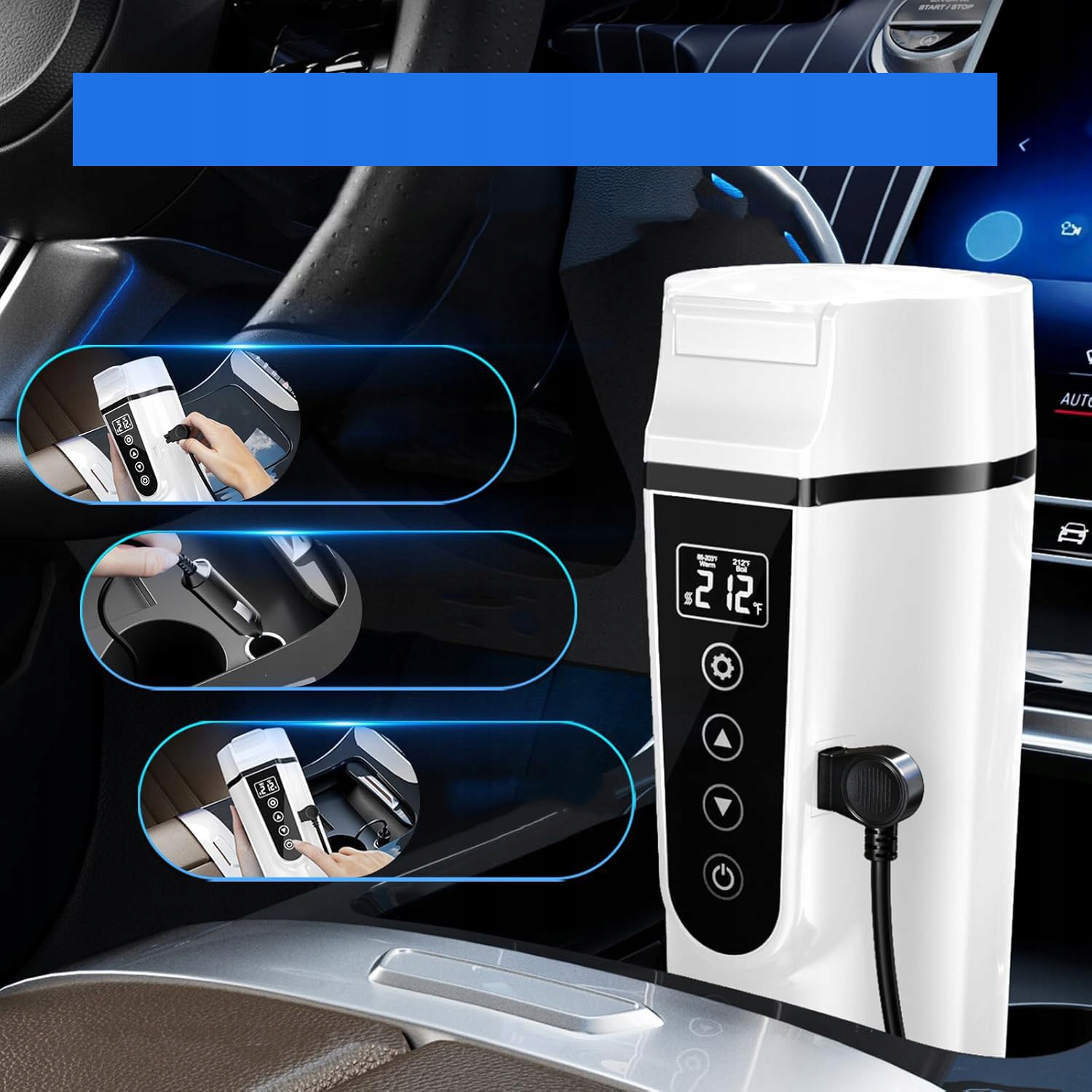 🚗 Портативность и различные температурные режимы: Этот небольшой автомобильный чайник имеет легкий вес, емкостью 450 мл, с функциями кипячения и поддержания тепла. Автомобильный чайник можно использовать с автомобильным прикуривателем 12 В/24 В, функция поддержания тепла позволяет регулировать диапазон температур. от 30°C до 95°C, нажав ▲ или ▼. Удовлетворяет ваши потребности в кипячении воды или сохранении тепла кофе, чая и молока в дороге.
