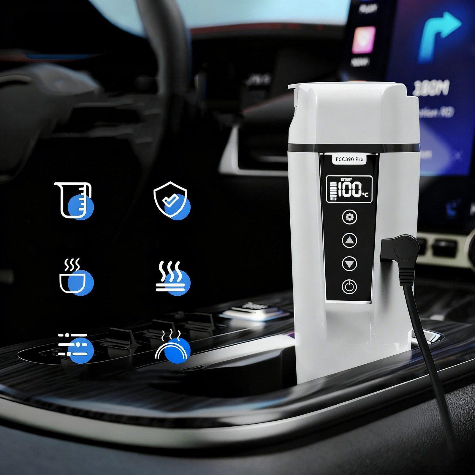 🚗 Модернизированный интеллектуальный дисплей: Автомобильный чайник 12 В/24 В с большим светодиодным дисплеем. Умные сенсорные кнопки позволяют устанавливать температуру в соответствии с вашими предпочтениями и четко отображать температуру на экране. Автомобильный электрический чайник GRACEALL можно переносить в автомобиле, такси, грузовике, путешествовать с ребенком, что делает ваше путешествие более удобным.