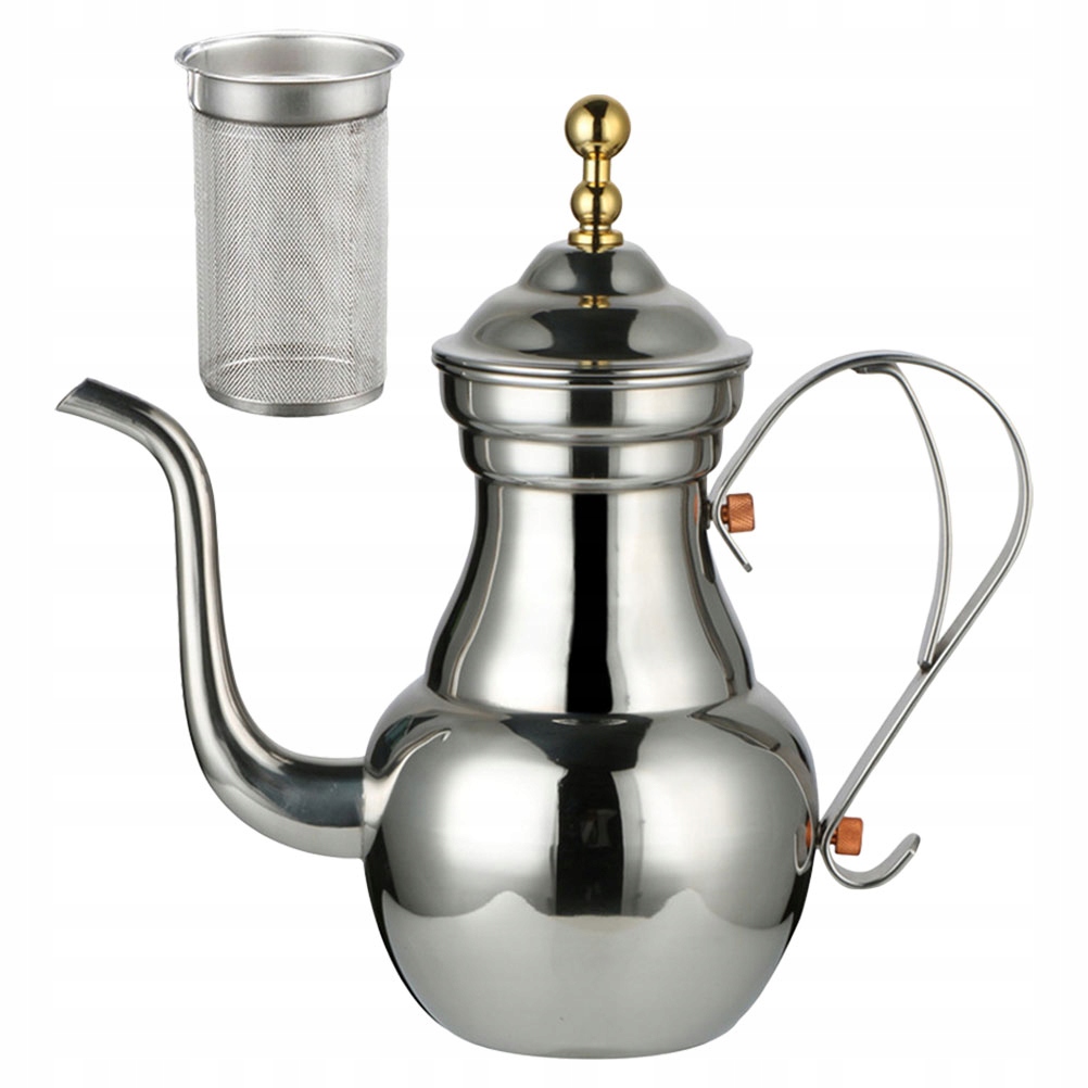 Это кофейник с длинным носиком ручной работы, изготовленный из прочной нержавеющей стали, износостойкий и не поддающийся ржавчине. Длинный носик предназначен для облегчения опорожнения и имеет удобную ручку. Креативный внешний вид и ближневосточный стиль, что также является хорошим украшением.