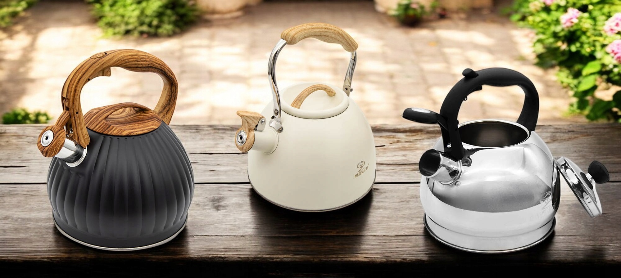 Стальной чайник 2,5 л крема из нержавеющей стали для индукции газа со свистком