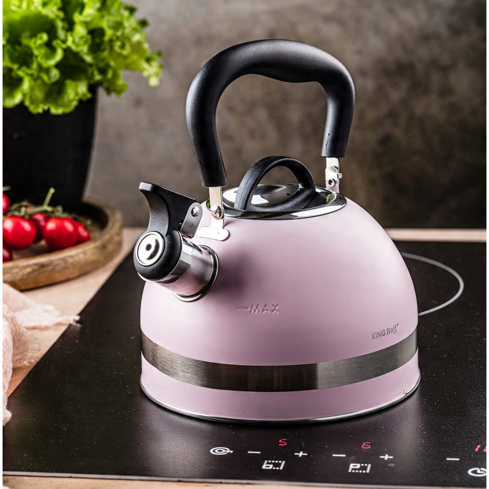 СТАЛЬНОЙ ЧАЙНИК СО СВИСТОКОМ 1,8 Л Традиционный ГАЗОВЫЙ ЧАЙНИК ИНДУКЦИОННЫЙ Розовый