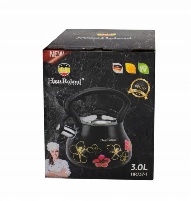 Чайник сталевий зі свистком 3L Induction GAS BLACK з квітами