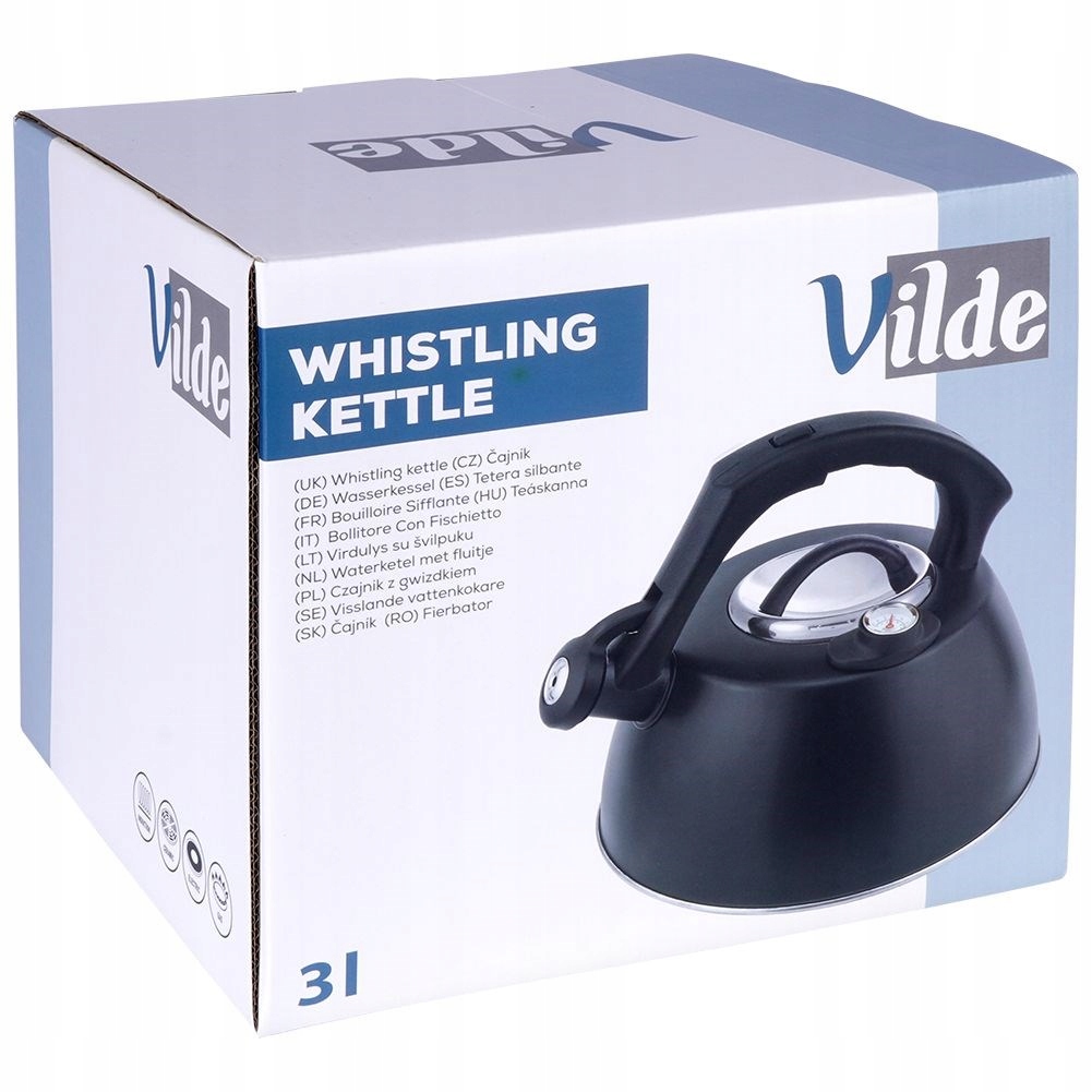 Чайник с термометром изготовлен из материалов высочайшего качества. Мы будем использовать его для кипячения воды для кофе, чая или для заваривания трав. Удобен в использовании благодаря ручке, крышке и автоматическому свистку. Термометр позволит заваривать чаи и травы при соответствующих температурах: черный чай следует заваривать при 90-95°С, зеленый чай при 75-85°С, белый чай при 70-80°С, желтый чай при 80-85°С. °С, травяной чай при температуре 95°С-100°С, травы лучше всего заваривать при температуре 95°С. В чайнике можно очень быстро вскипятить воду, а чистить его очень удобно. Чайник – отличная идея для подарка. ВНИМАНИЕ! Кипящий чайник должен быть заполнен как минимум наполовину, чтобы не допустить перегрева. Изменение цвета внешней поверхности в случае несоответствия минимальным эксплуатационным параметрам не может быть поводом для рекламации. Оригинальное изделие Vilde. Изготовлено в соответствии с европейскими стандартами.