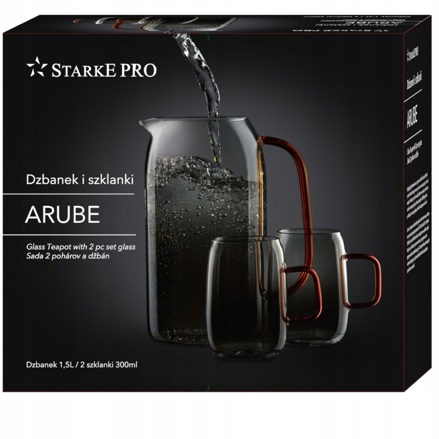 Стеклянный кувшин Starke Pro Arube объемом 1,5 л и 2 черных стакана по 300 мл — это сосуды, в которых можно эффективно подать холодный или горячий чай (прочное боросиликатное стекло). Большая удобная ручка поможет удобно и точно разливать напиток по стаканам. Привлекательный внешний вид позволяет подготовить уникальную сервировку стола. Силиконовый чехол защищает от грязи и насекомых. Вы можете использовать этот набор как стильный подарок. Предназначен для ручной стирки.