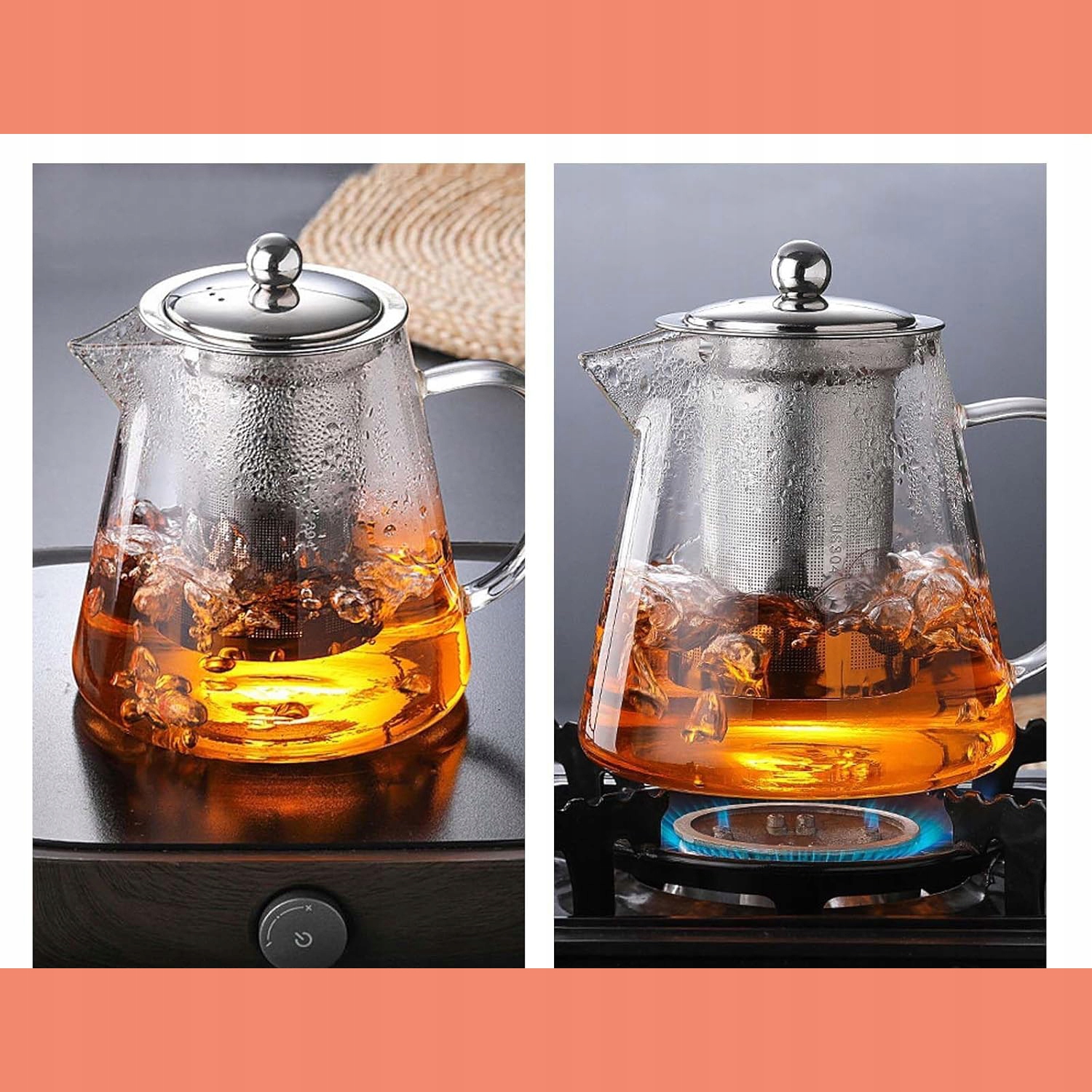 ✅ Безопасный материал: Используйте боросиликатный чайник и съемный фильтр из нержавеющей стали, соответствующий качеству пищевых продуктов. Чайный настой не содержит вредных химикатов, пластика и привкуса.