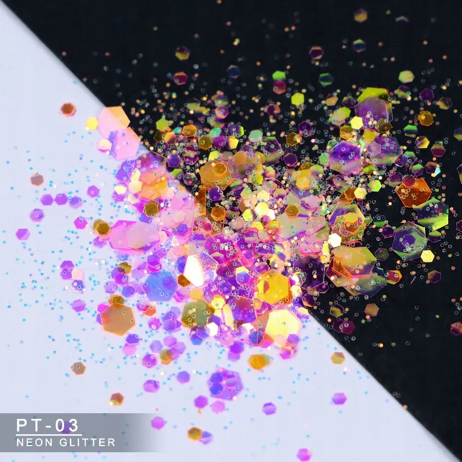 ВОЛШЕБНЫЕ, СИЯЮЩИЕ ЦВЕТА, ГОЛОГРАФИЧЕСКИЕ ДЕКОРАТИВНЫЕ РАСПАШНЫЕ БЛЕСКИ CHAMELEON MIX KUNKY GLITTER