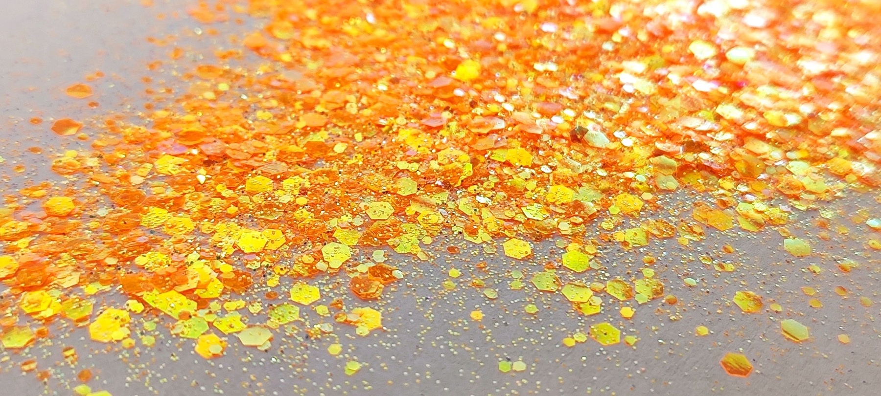 Это мелко нарезанные частицы блесток, покрытые голографическим покрытием. Голографический эффект создает завораживающую игру цветов, отражающую разные оттенки в зависимости от угла освещения и точки зрения. Плотная текстура придает этим блесткам трехмерный вид, добавляя глубины и блеска любой поверхности.
