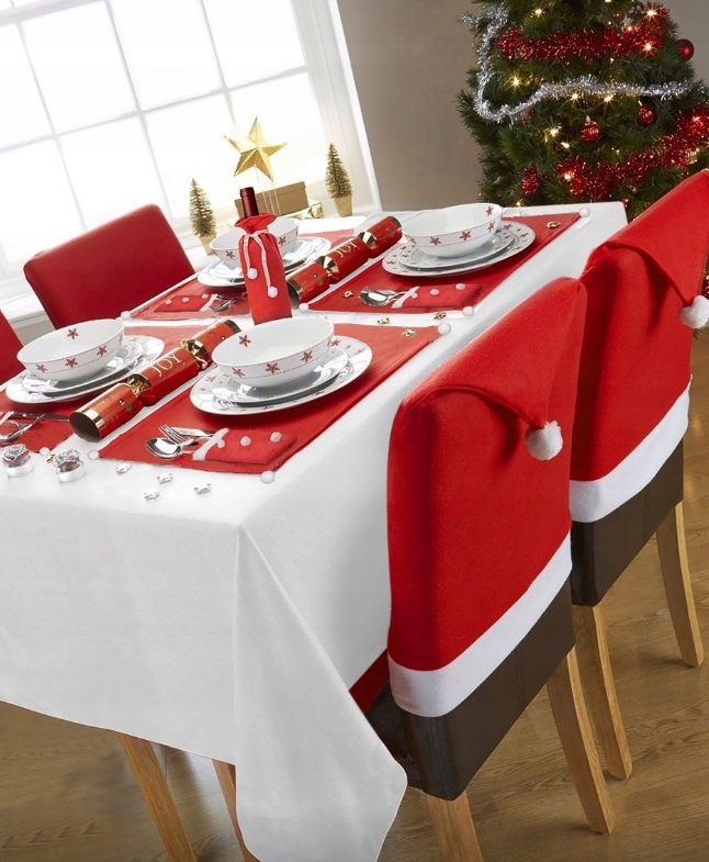 Создайте рождественское настроение в своем доме с помощью уникальных чехлов на стулья в форме шапки Санты!