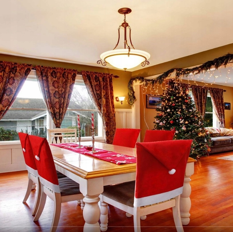 Чехлы не только выглядят стильно, но и делают каждый стул частью рождественского украшения.