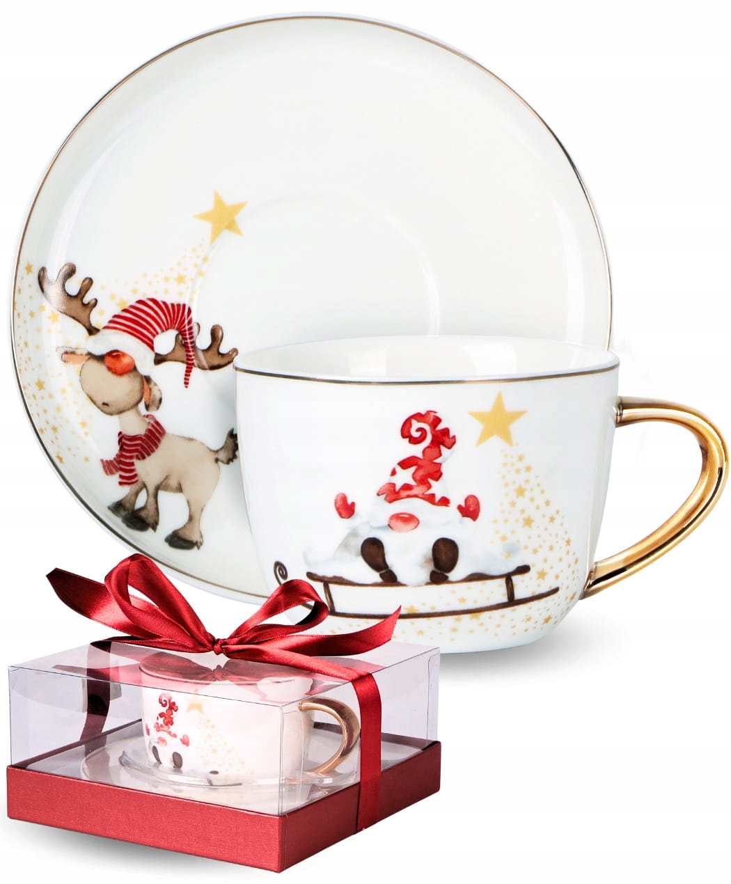 Рождественская чашка с блюдцом, упакованным в коробку из ПВХ.