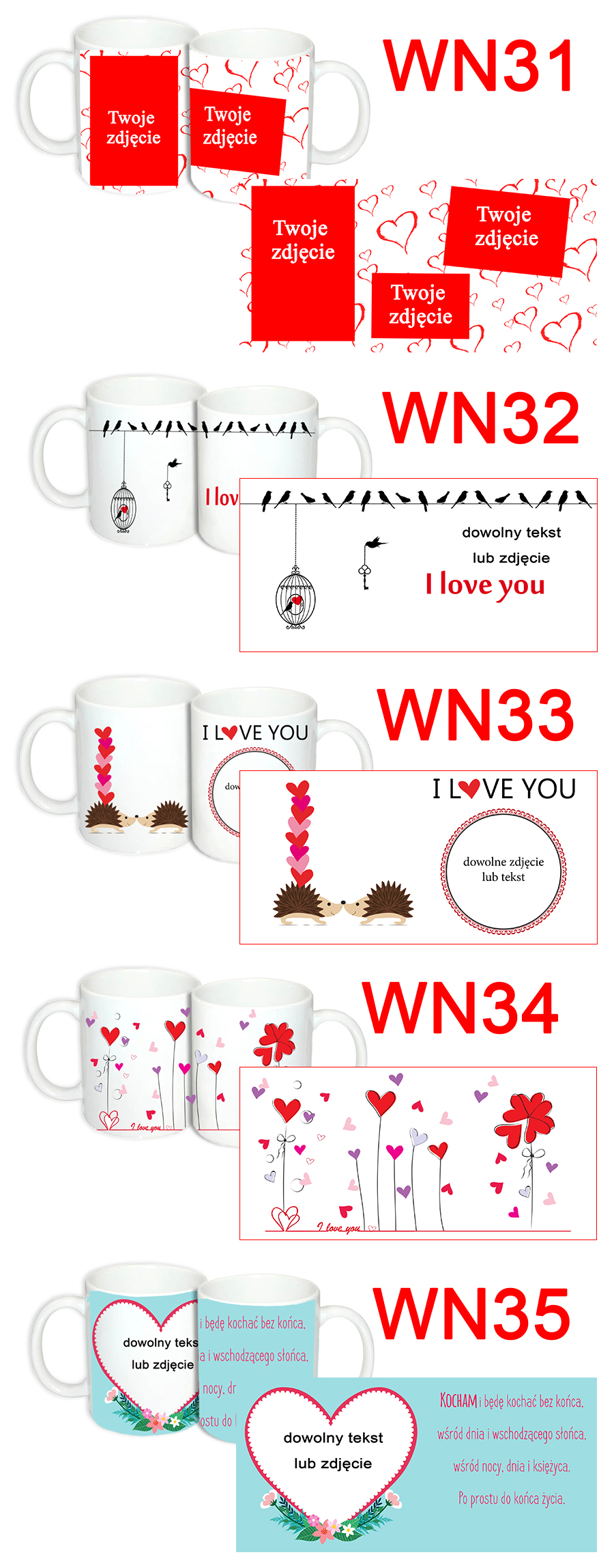- вы можете добавить любой текст на каждую кружку, поэтому при необходимости предоставьте ее, например: «Я тебя люблю»