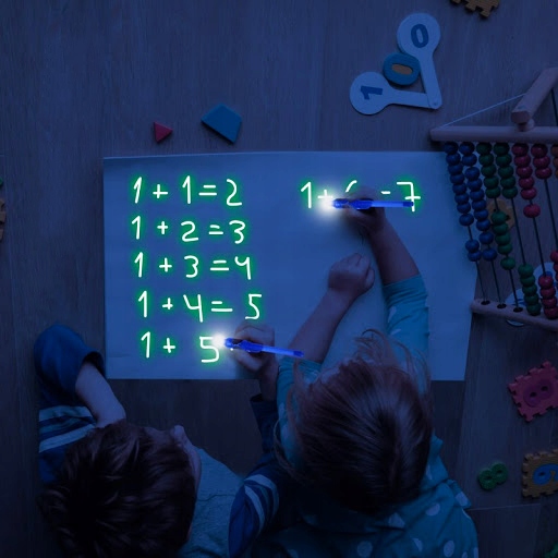 Наш набор предназначен для рисования в темноте. Чтобы начать веселье, зажмите кнопку на маркере и наведите его на доску, создавая различные фигуры, узоры и рисунки.