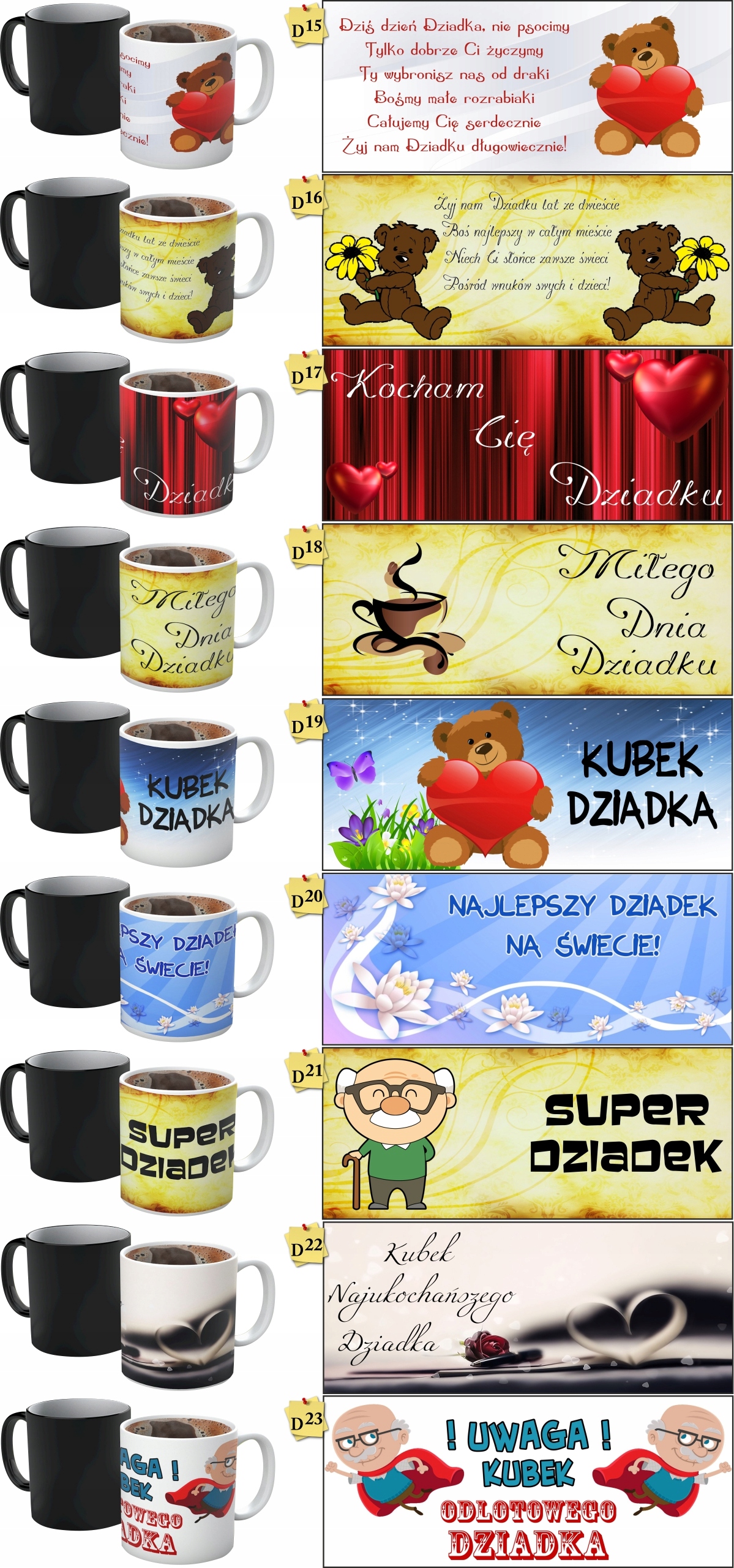 Просматривая «ВОЛШЕБНАЯ КРУЖКА С НАЗВАНИЕМ ДЕНЬ ДЕДУШКИ ДЛЯ ДЕДУШИ» данное изделие из «Забавные гаджеты» вы можете быть уверены, что после оформления заказа, доставки в Украину, вы получите именно то, что заказывали, в оговоренные сроки и европейского качества.
