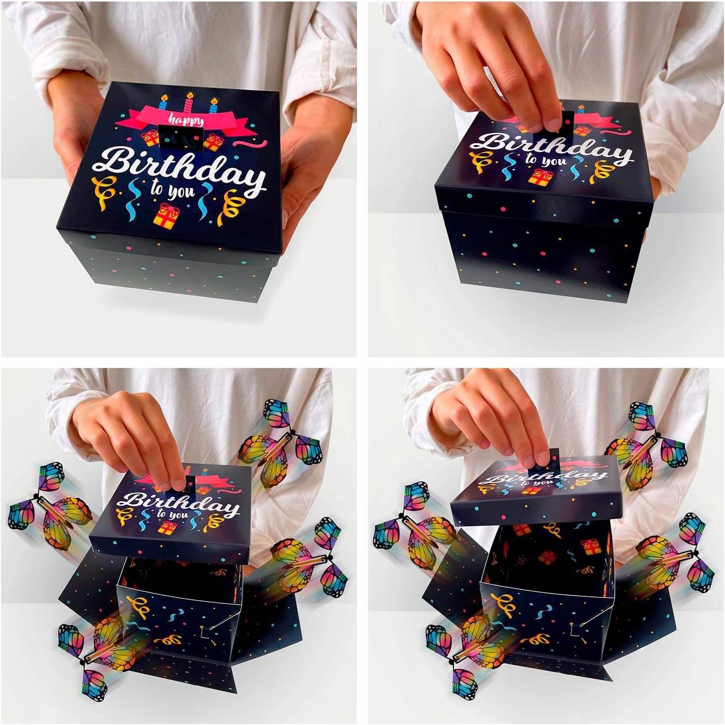 Подарочная коробка «Взрыв бабочки» своими руками (С Днем Рождения) 12 x 12 x 12 см, Коробка с летающей бабочкой-сюрпризом