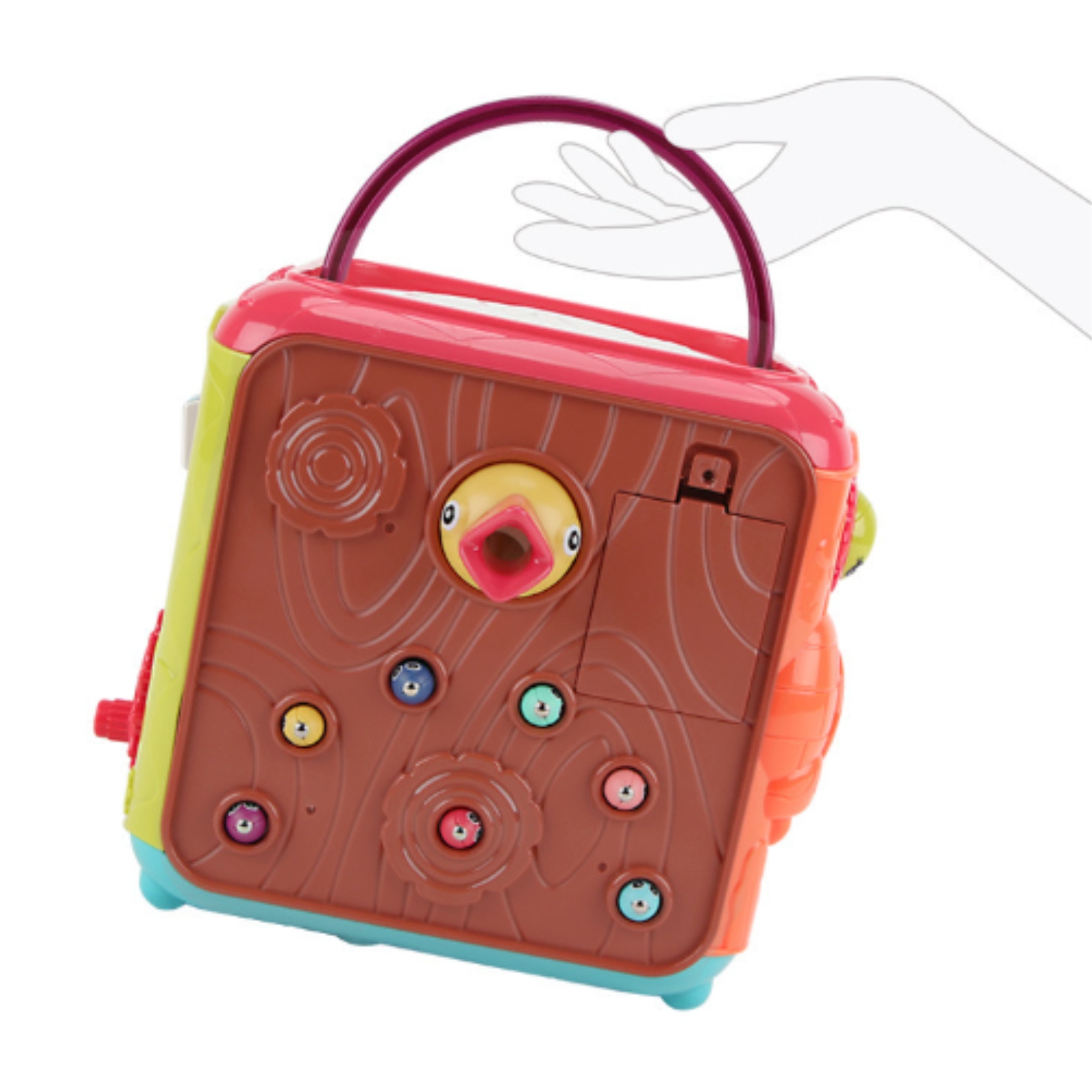 Куб оснащен множеством различных элементов, которые привлекают внимание ребенка и стимулируют его чувства. Благодаря встроенным звукам малыш может изучать разные звуки и научиться распознавать звуки.