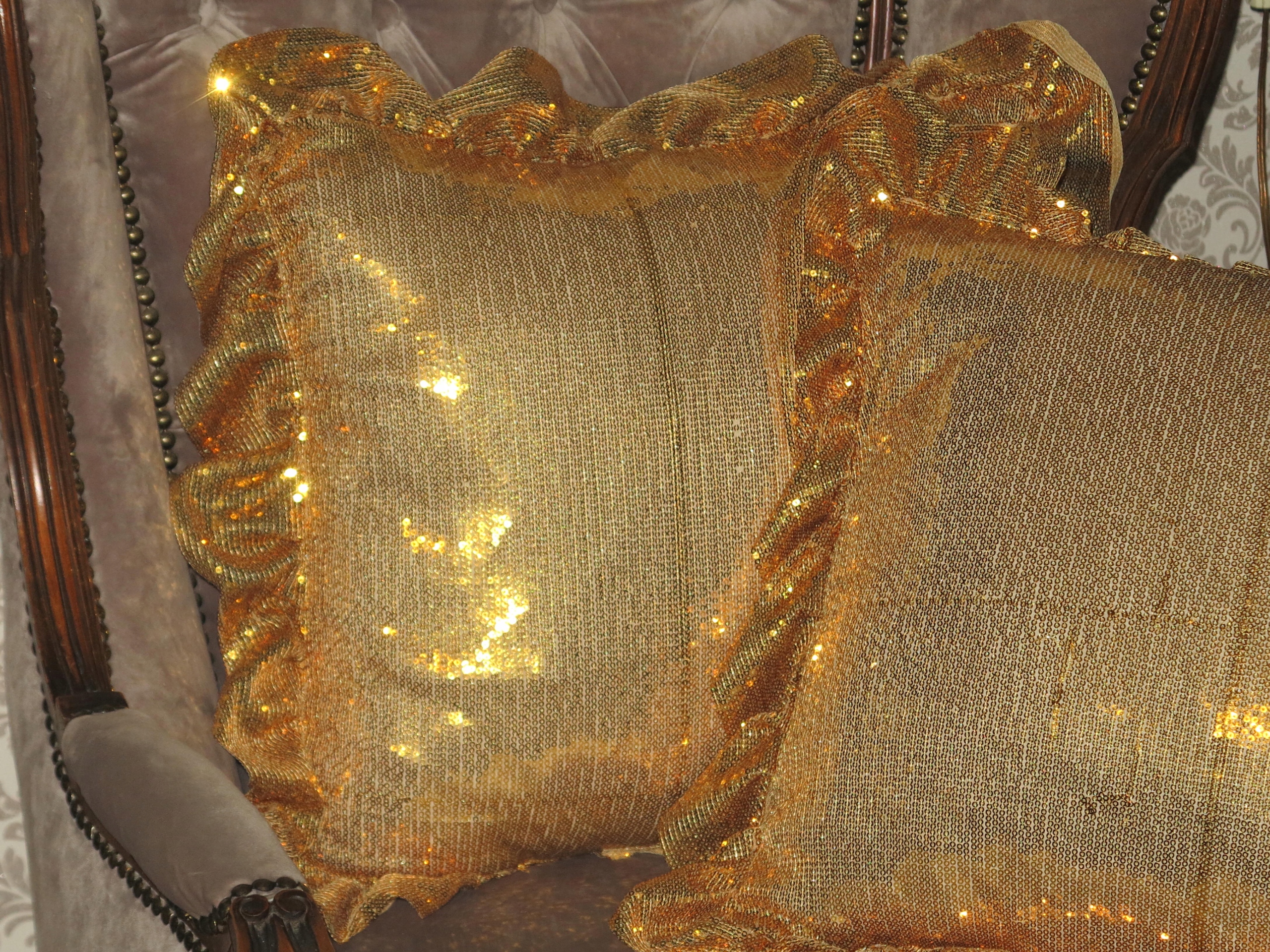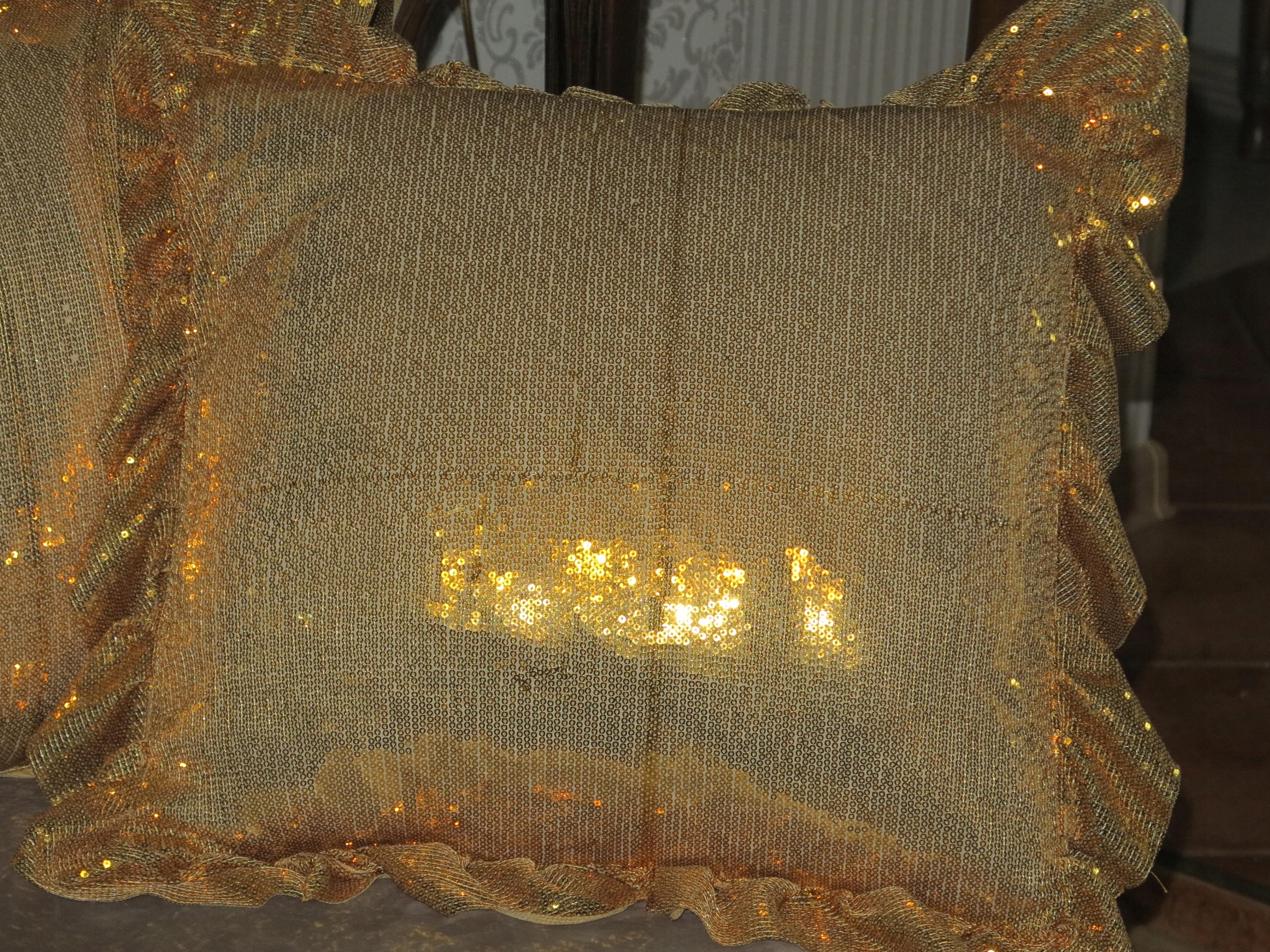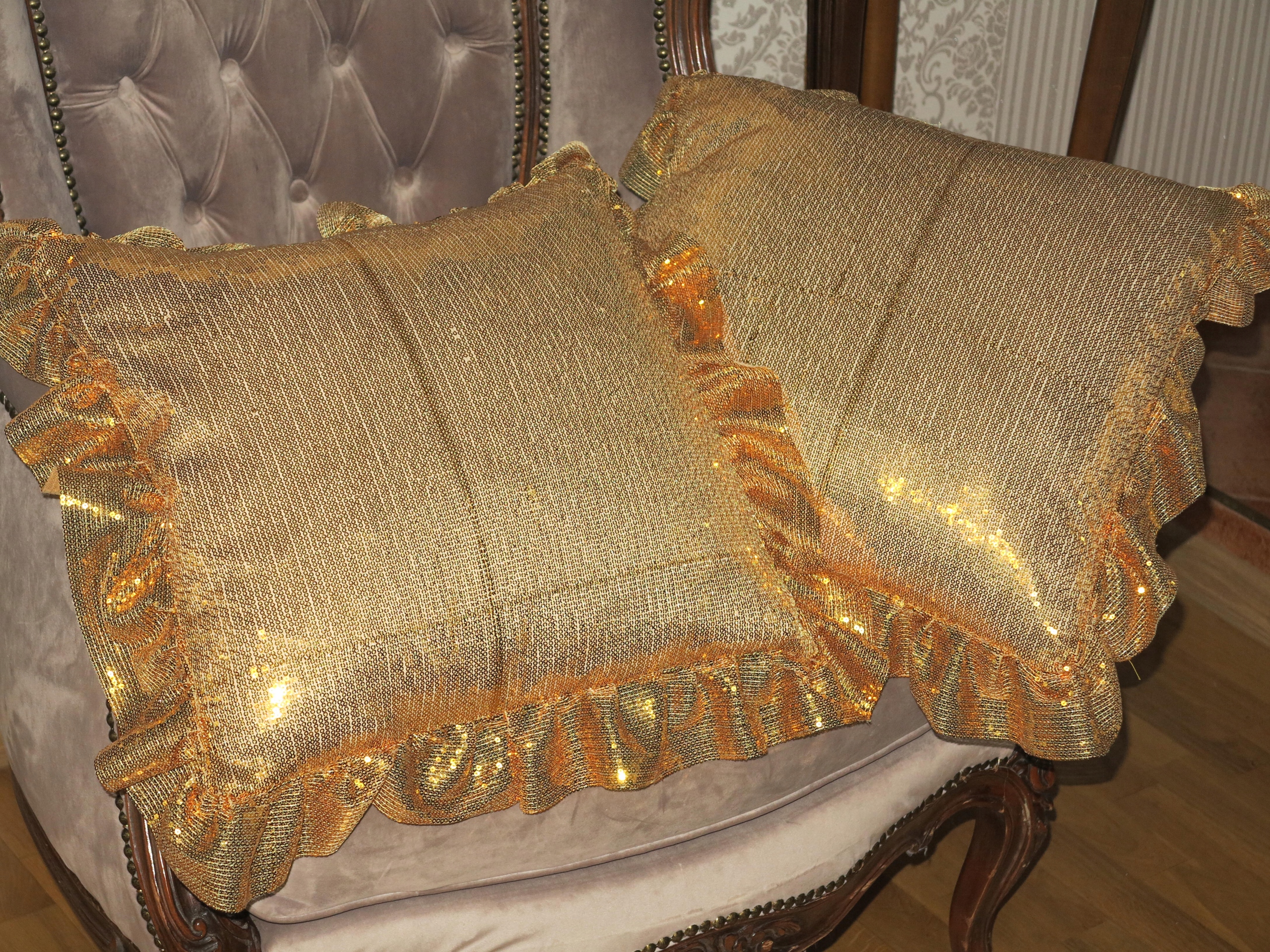 Предмет аукциона - комплект красивых золотых наволочек с пайетками и оборкой. Набор б/у, в очень хорошем состоянии. Рекомендую.