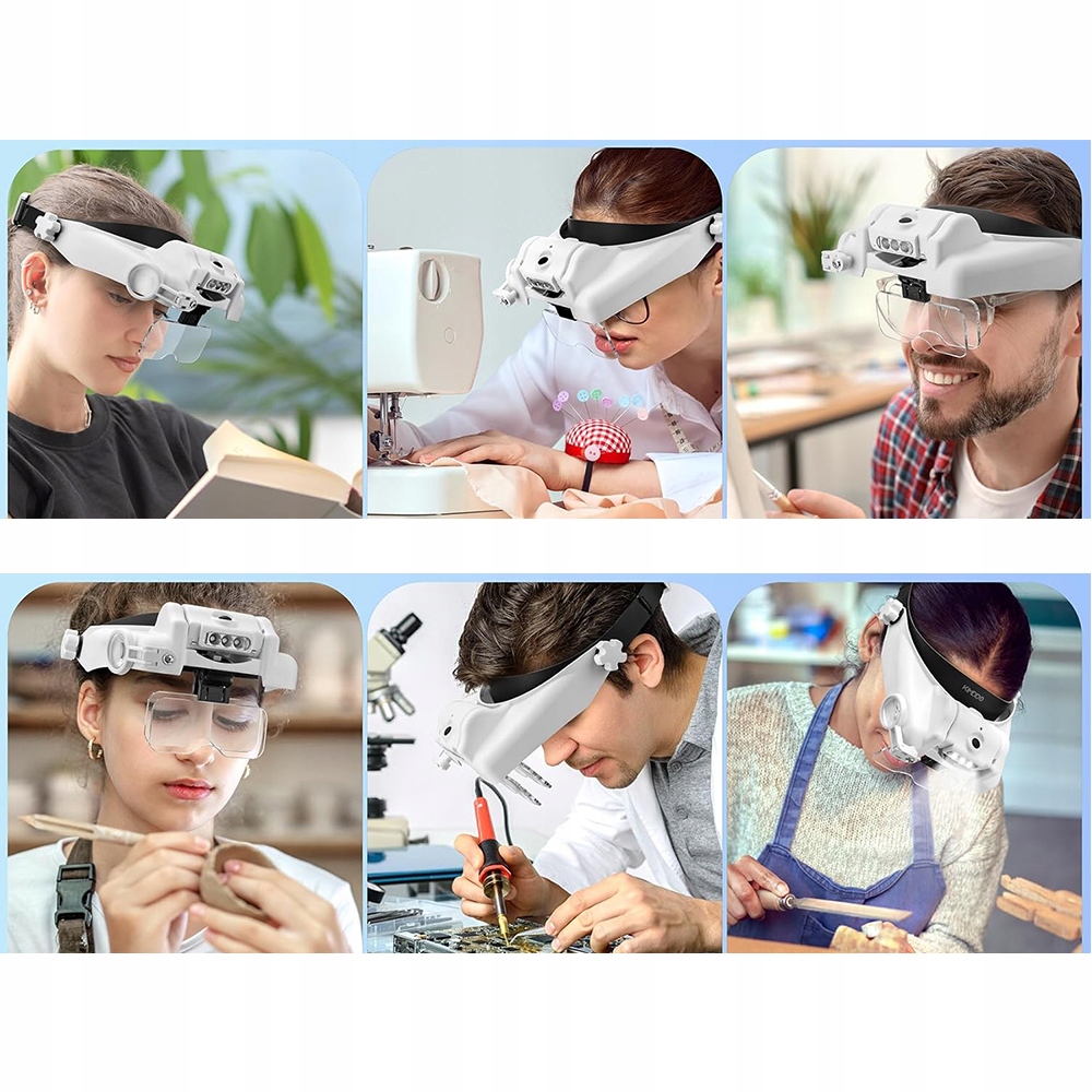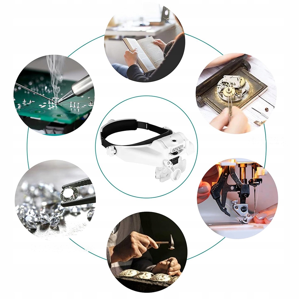 Эта налобная лупа с подсветкой подходит для различных хобби и профессиональных задач, таких как вышивание крестиком, алмазная живопись, изготовление ювелирных изделий, чтение, ремонт, сварка, шитье и многое другое.