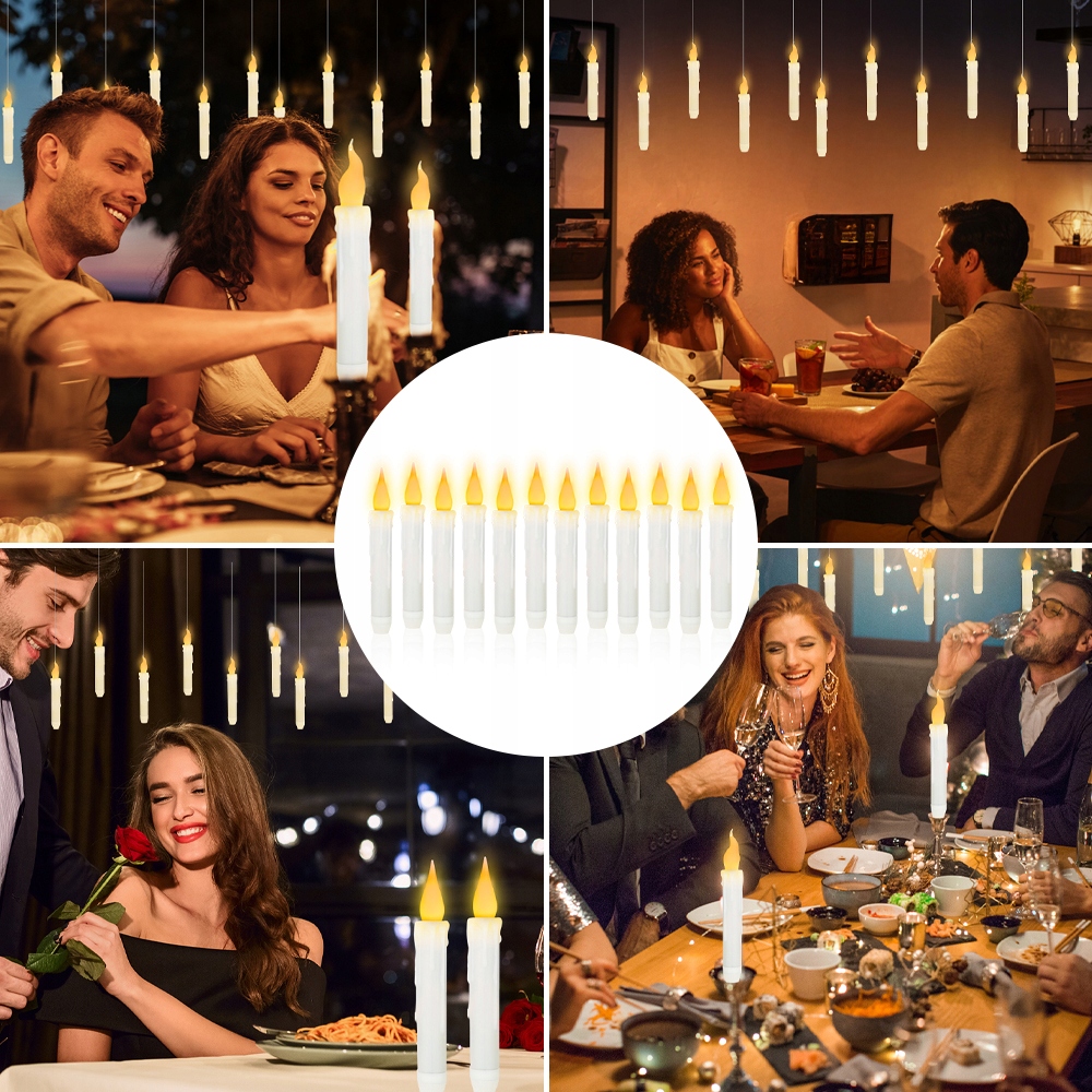 Причудливая плавающие свечи, универсальное украшение: Свечи элегантно плавают в воздухе, и почти невидимая рыбалка позволяет повесить их на потолке, в дверь, окна, вокруг елки или на подоконнике/столе. Создайте волшебную атмосферу в мгновение ока.