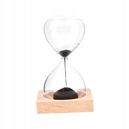 Магнитные стеклянные песочные часы, наполненные металлическими опилками. В деревянное основание песочных часов помещен магнит, который притягивает опилки внутри песочных часов.