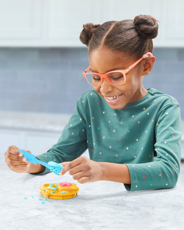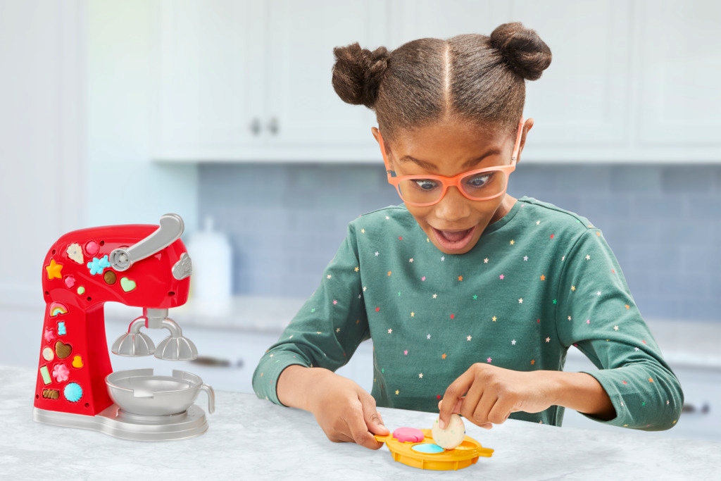 Создавайте замечательные торты, кексы и печенье из теста с помощью игрового набора Play-Doh Magic Mixer! Кандидаты в пекари могут притвориться, что создают огромное количество выпечки, поместив 1 из 2 лотков с формами для сладостей Play-Doh в съемную чашу, наполнив каждую форму пластилином Play-Doh и просто потянув за рычаг, чтобы выдавливать печенье сумасшедшей формы и торты причудливых форм! Добавьте имитацию фигурной глазури с помощью соковыжималки или лопаточки, сформируйте искусственные гранулы, используя отверстия в ручке лопаточки, и создайте еще больше конфет, начинок и украшений из пластилина, используя формочки на боковой стороне игрушечного миксера. Этот игровой набор Play-Doh содержит 283 г нетоксичного теста для лепки различных цветов. Он доставляет массу удовольствия от творчества и является отличным подарком для детей от 3 лет и старше, которые любят кухонные игрушки и кулинарные развлечения.