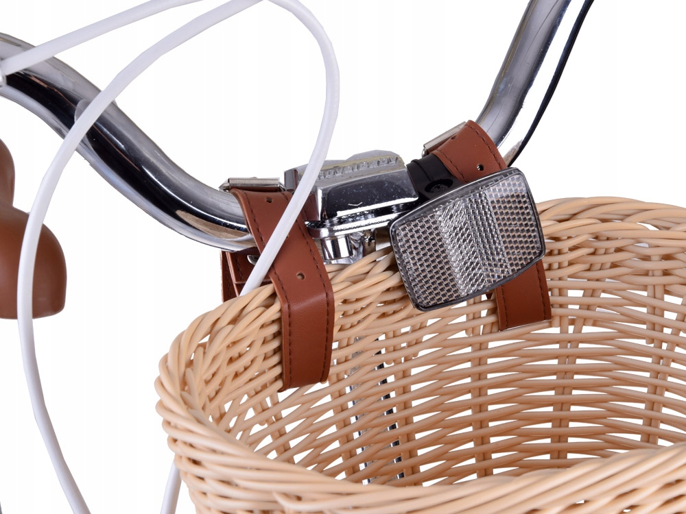 Стабильное рулевое колесо: широко и эргономично гарантирует полный контроль над велосипедом. У рулевого колеса есть место, чтобы прикрепить стильную, просторную корзину, которая позволит вам взять с собой необходимые вещи для поездки. Мягкие, прочные резиновые ручки обеспечивают определенную сцепление и комфорт во время вождения. Колокол, запеченный на рулевом колесе, позволит вам безопасно предупредить пешеходов во время вождения.