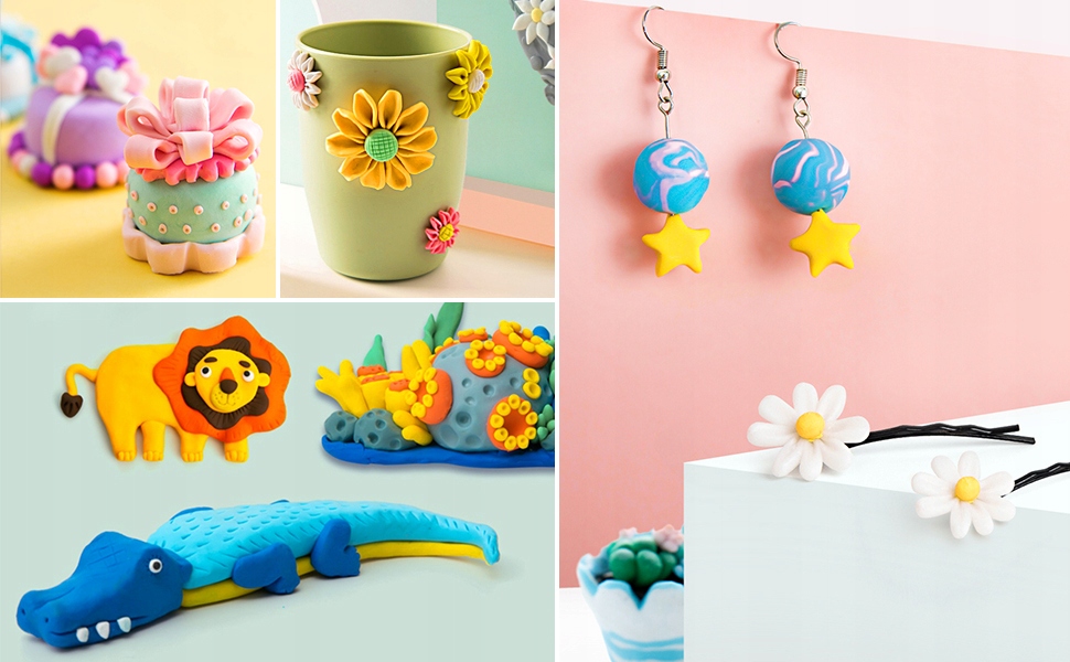 ✔️ - Идеально подходит для начинающих и детей для изготовления небольших украшений, моделей животных, фигурок и т. д. Дети могут создавать разнообразные произведения искусства в самых разных ярких цветах. Профессионалы также могут использовать его, чтобы продемонстрировать свои навыки.